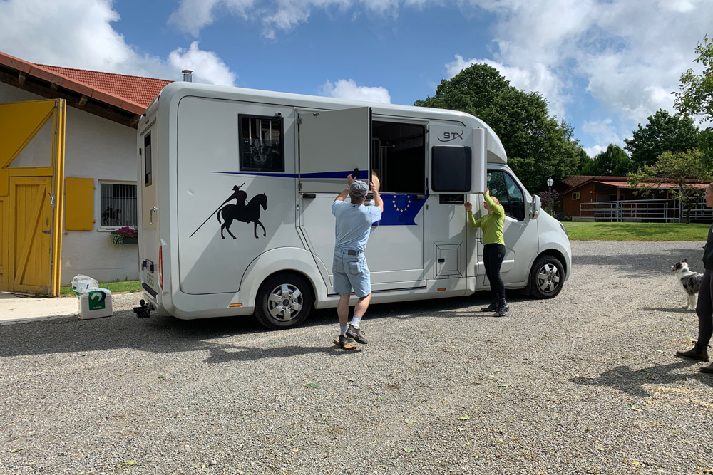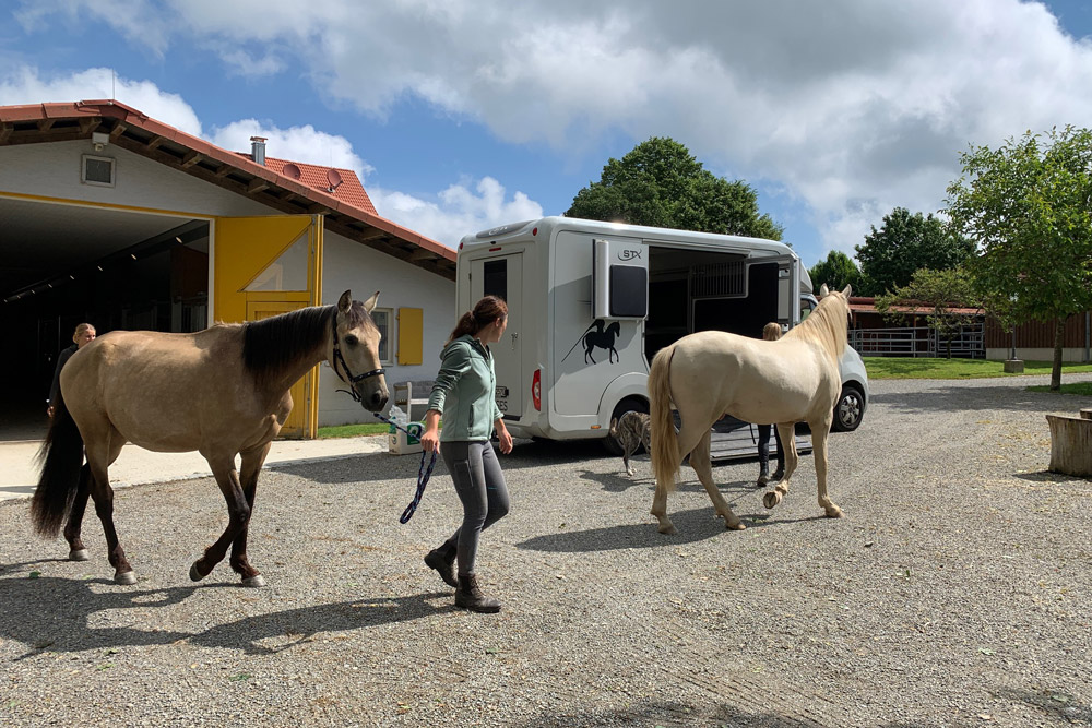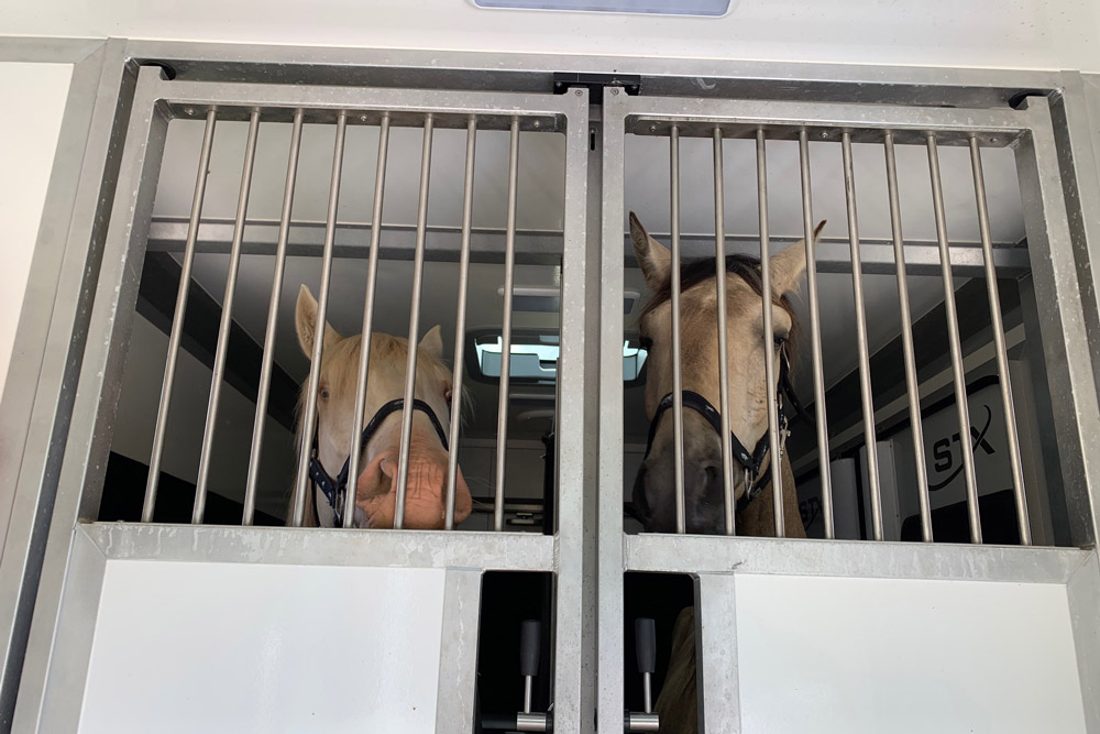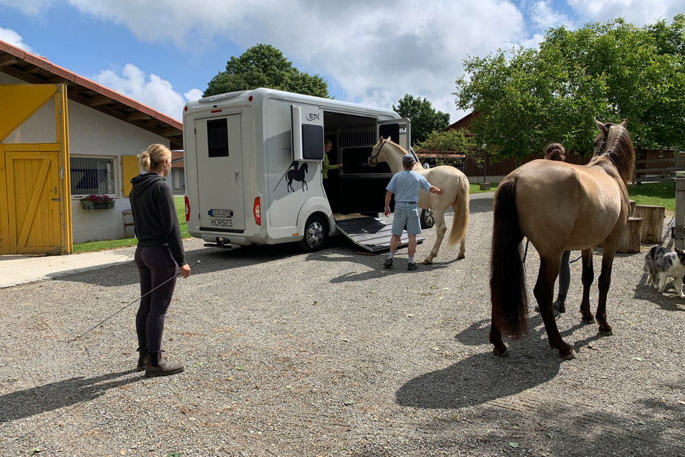 Irgendwie wollten die „wilden“ 3jährigen Hengste heute allerdings lieber kuscheln. Sogar das Halfter musste im Liegen angezogen werden. Das Verladen hat dann nicht mal 2 Minuten gedauert und nun werden Unico und Primero nach Hause chauffiert.