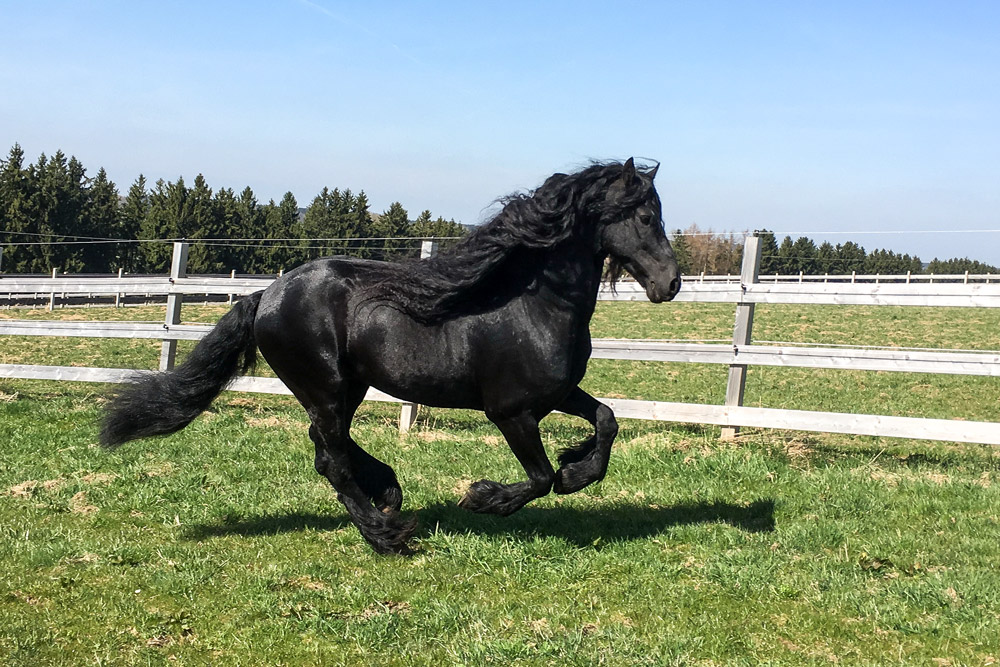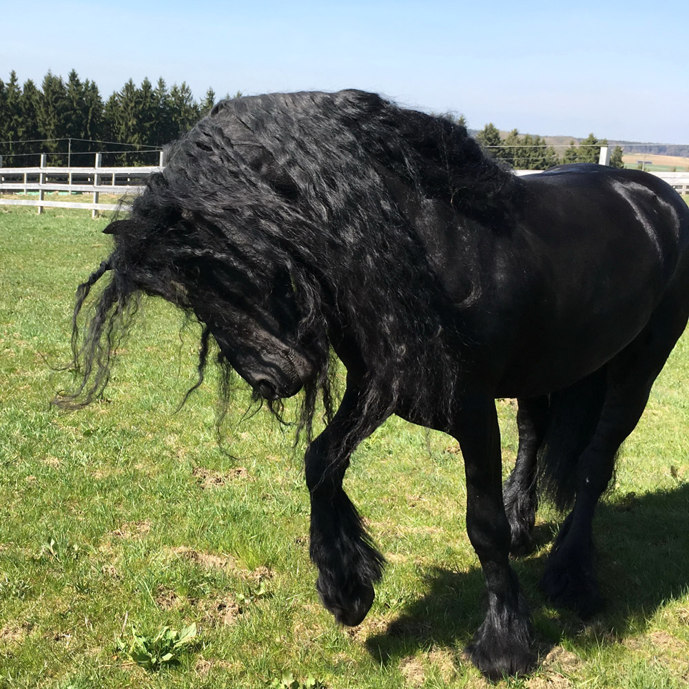 Nach einem schweren Unfall im Oktober 2016 und monatelangem Tragen eines Stützkorsetts, stieg Daggi zum ersten Mal wieder bei uns aufs Pferd. Da unser Camacho butterweich zu sitzen ist, war er das ideale "Therapiepferd". Anschließend erfreute er sich an den endlich wieder saftig werden den Koppeln.