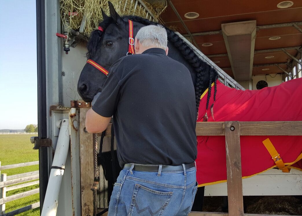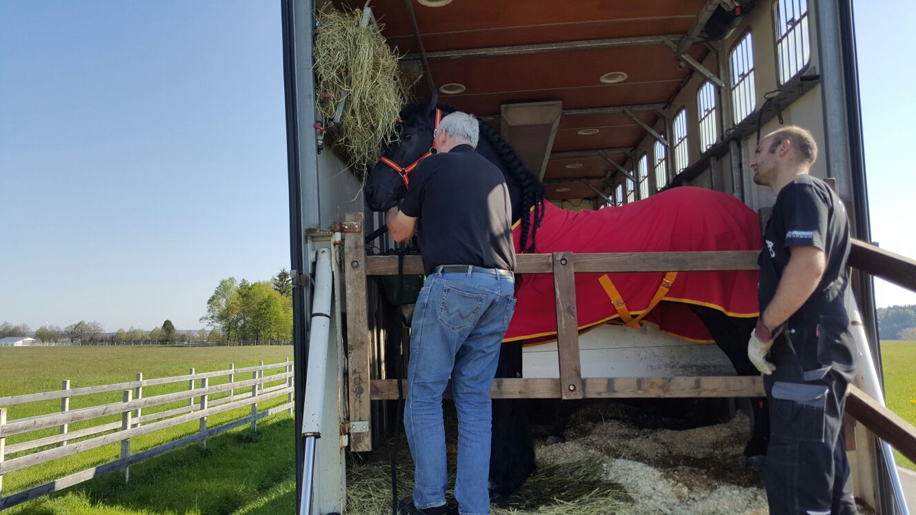 Träume werden wahr auf Fleur de Lis! Am Muttertag, den 8. Mai 2016 ist Camacho aus Spanien angekommen! Er stammt von Piter 312, MV ist Oltmann 317 - ein rassetypischer Friesenhengst mit wunderschöner Aufrichtung und Ausstrahlung sowie sehr lieben Augen. Das Pferd, welches auch gedeckt hat, präsentiert sich gerne. Camacho ist von Carmen Susenburger sehr gut ausgebildet worden, er war 6 Jahre in ihrem Besitz. Unsere Pferdefamilie ist nun perfekt!
