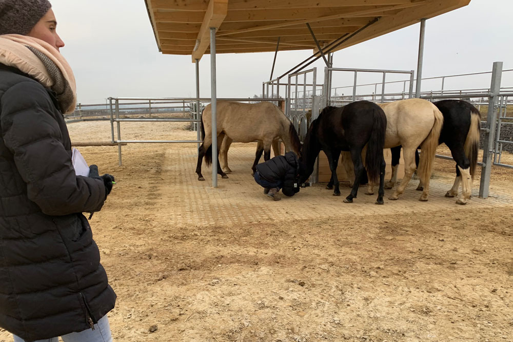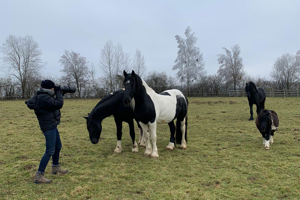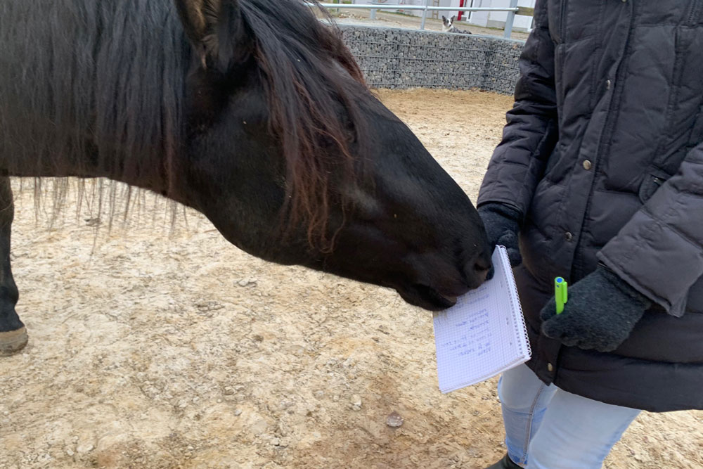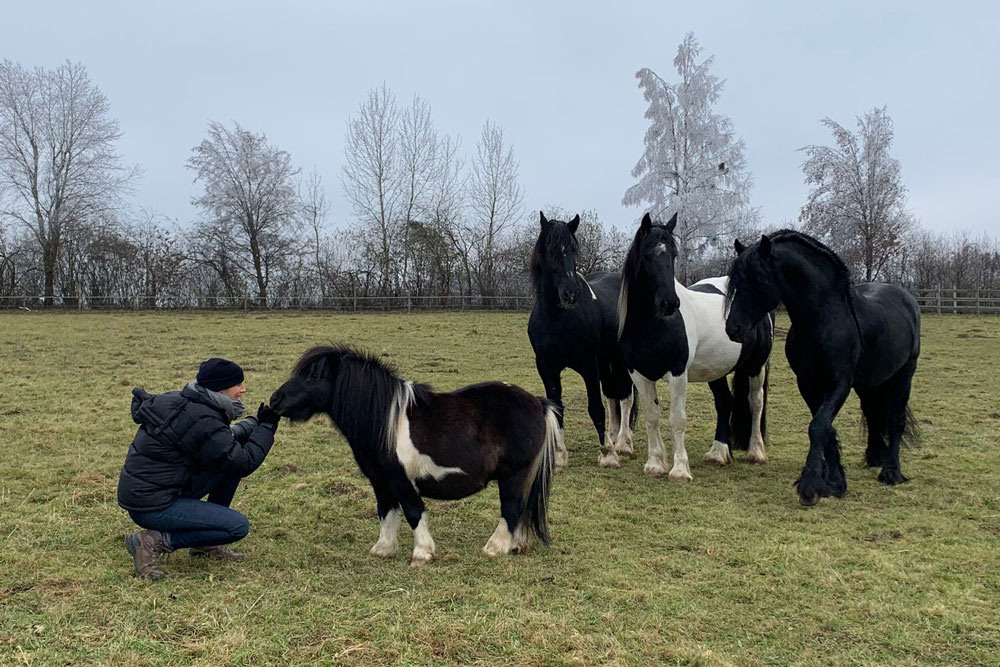 Am 30. November war es dann soweit. Nach einer Hofführung konnten sich die Redakteurin und die Fotografin zusammen unsere (Gruppen)Hengsthaltung in natura anschauen. Beide waren begeistert wie ruhig und entspannt unsere Pferde sind. Während der fast 4 Stunden haben die Jungs immer mal wieder gespielt und Fellpflege betrieben - etwas, das der Hengst in „Einzelhaft“ nicht erleben kann.
