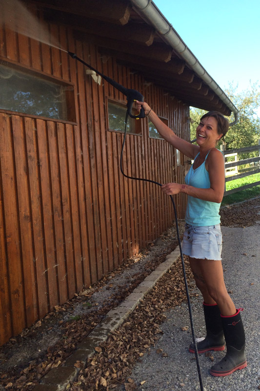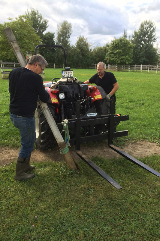 Bald ist es so weit und die derzeitige Großbaustelle findet ein Ende. Bis dahin passiert aber jeden Tag noch unfassbar viel: Wir mussten feststellen, dass der Boden der Reitplätze nicht bereitbar war. Die Pferde rutschten aus – also mussten neue Böden bestellt werden, die nun geliefert wurden, auch die Umrandungen werden erneuert. Wir haben Zäune versetzt, ein Reitplatz wird zum Longierplatz – der Weg dahinter führt zur Führanlage. Diese wird ebenfalls ausgetauscht. Im Laufe der Woche wird die alte abgebaut und eine neue, überdachte ist bereits bestellt. Neue Wege werden erschlossen – ein Rundkurs – zum einen, damit die großen Baustellenfahrzeuge besser rangieren können, zum anderen auch als Vorbereitung für den Winterräumdienst, der dann am Hof nicht drehen muss. Von der Toilette in der neuen Sattelkammer über die Renovierung der oberen Gästewohnung, Terrassen, Vordächer: So viele Um- und Neubauten geschehen. Die neue Miste wurde diese Woche fertig gestellt. Das Provisorium wird die Tage abgetragen, die Wege neu gemacht.