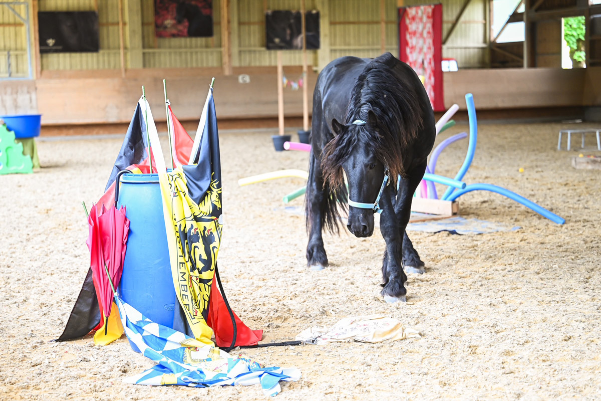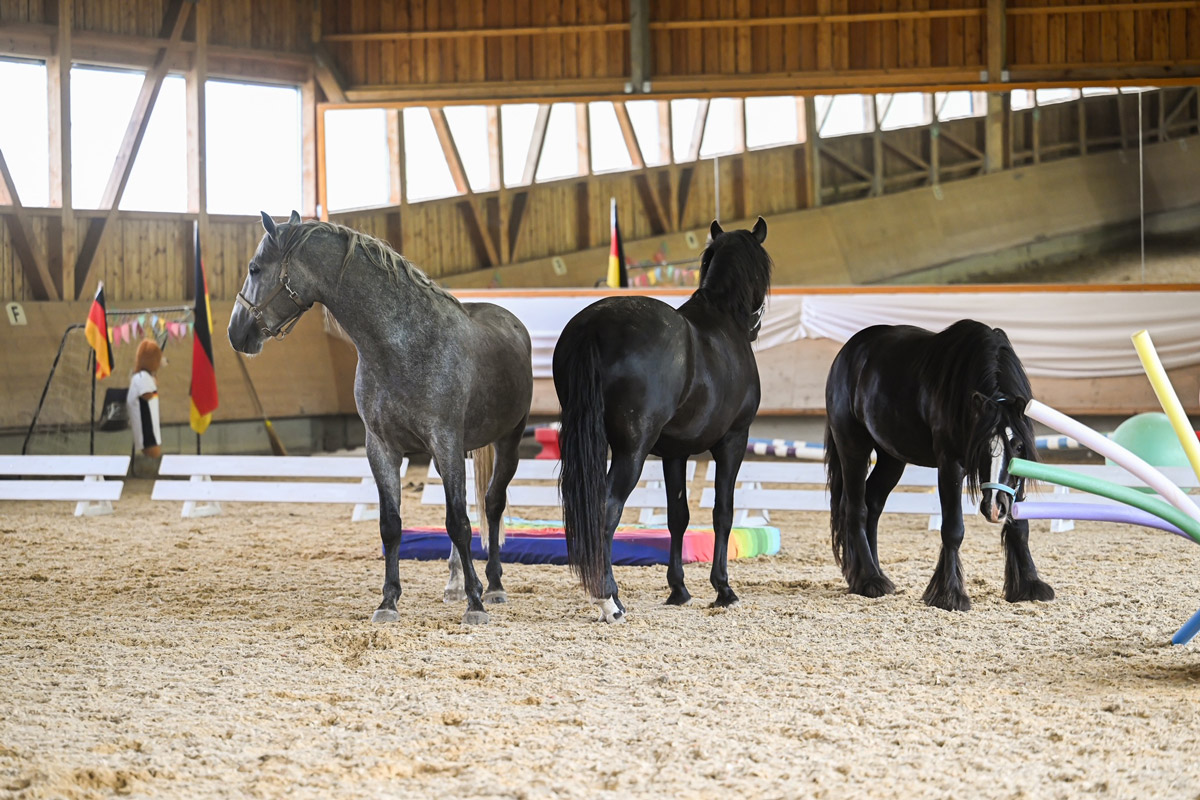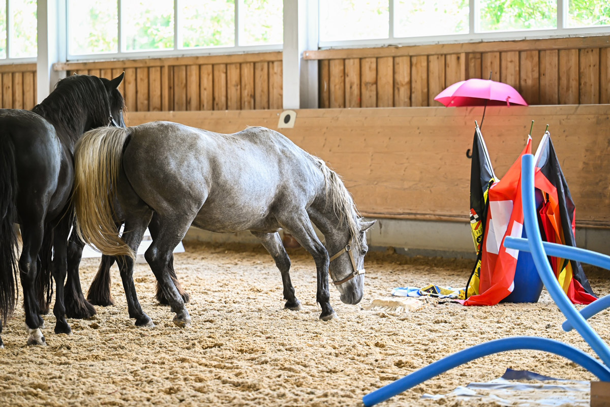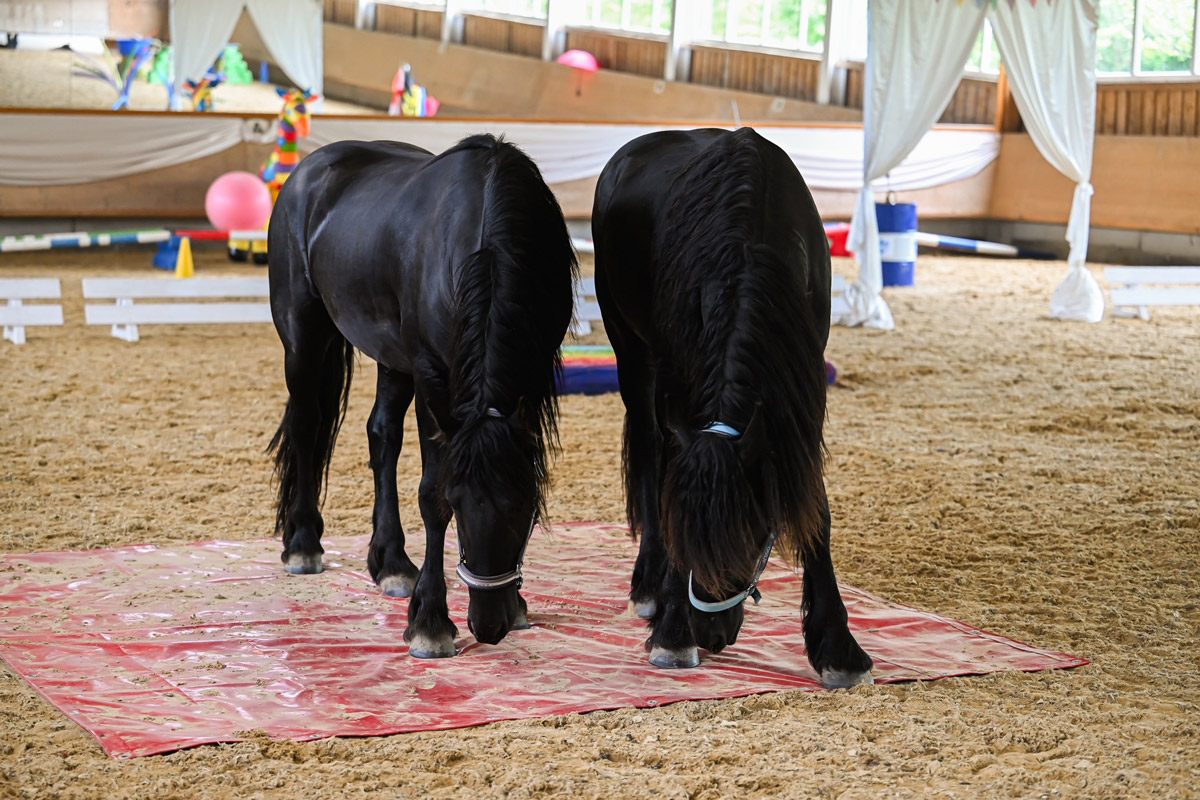 Schon in ein paar Wochen ist die Aufzuchtzeit für die 3jährigen Hengste POLDY, RAVIOLI und CODY zu Ende und sie kehren zu ihren Besitzern zurück. Als Abschluss Highlight durften sie noch zusammen mit unseren Friesenhengsten PRIAMOS und RICO den Gelassenheit Parcours anschauen. Uii, da gab es viel zu bestaunen und beschnuppern. Mit ein wenig Futter aus der Schüssel, waren auch gruselige Sachen dann doch nicht mehr soooo schlimm