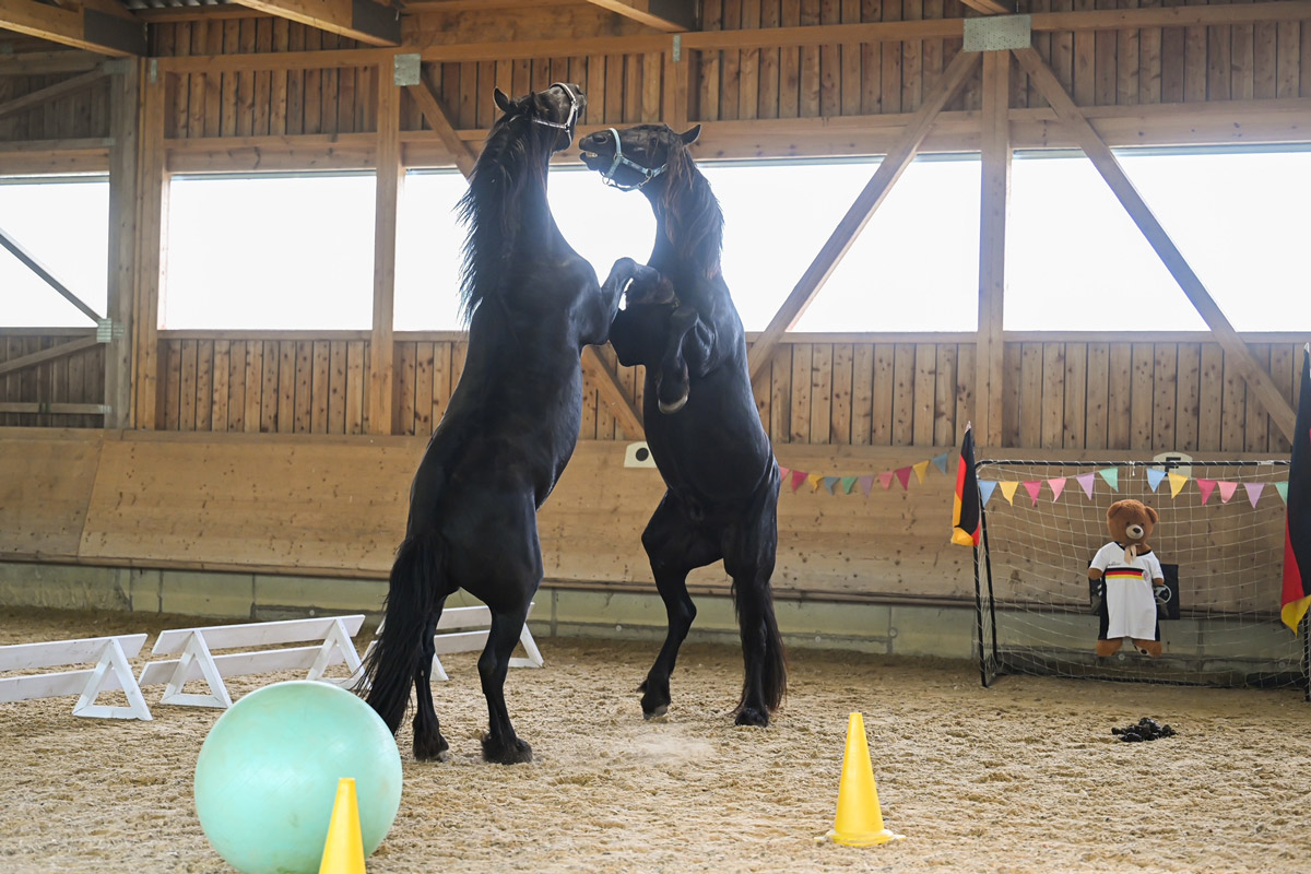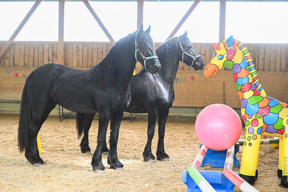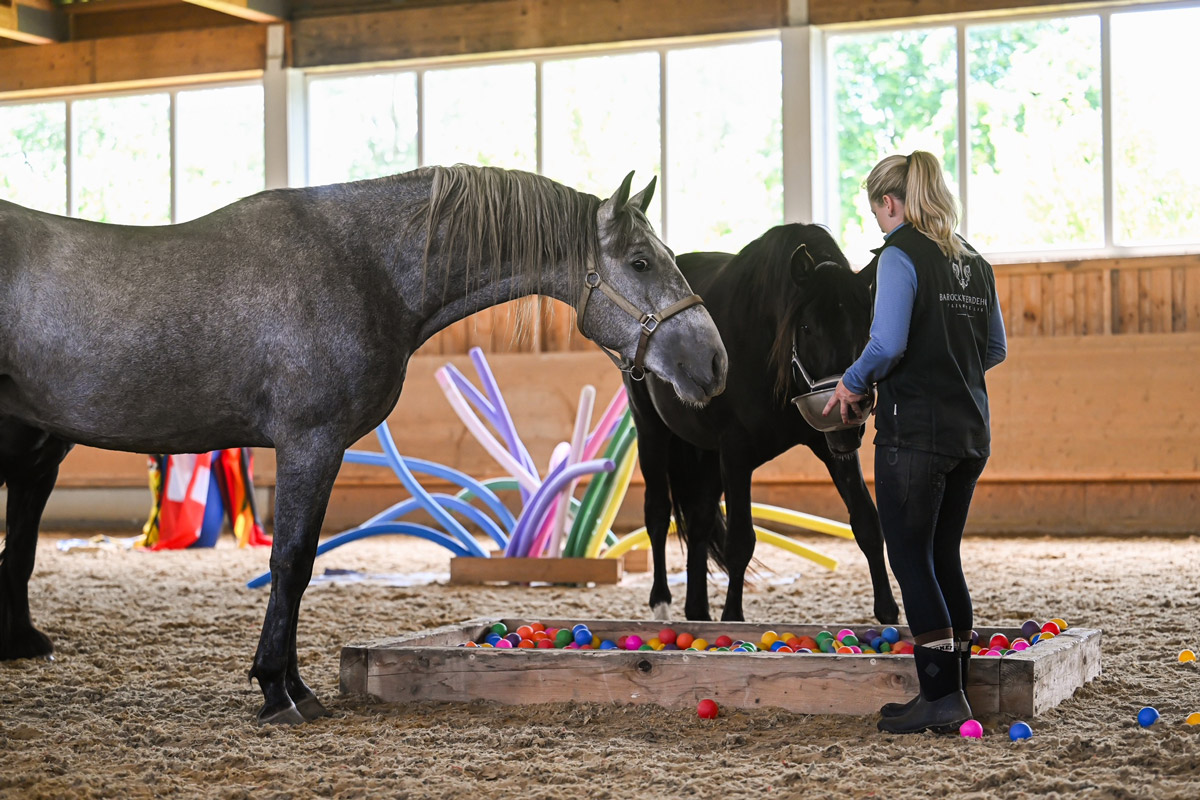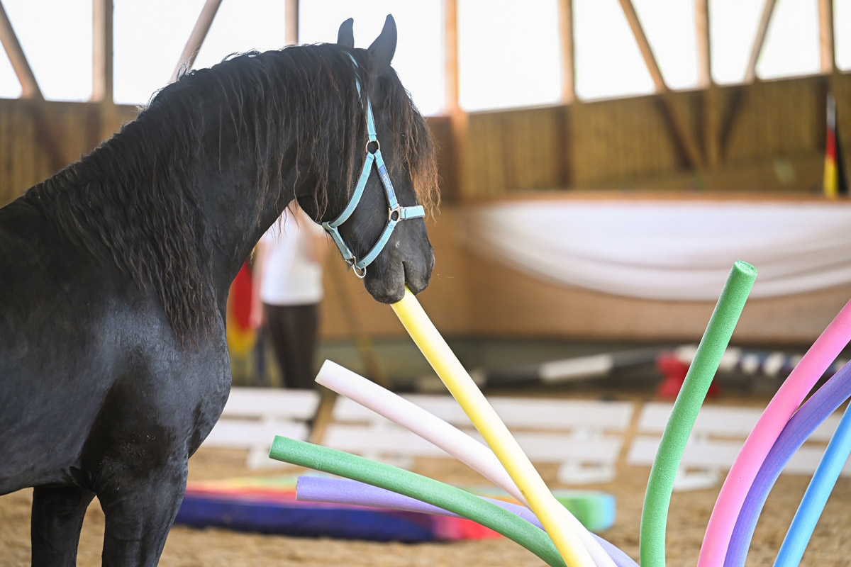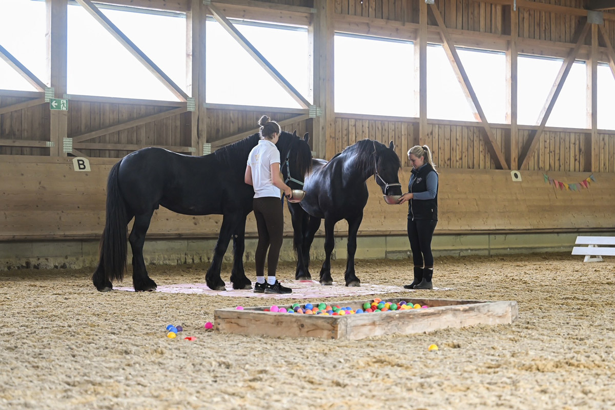Schon in ein paar Wochen ist die Aufzuchtzeit für die 3jährigen Hengste POLDY, RAVIOLI und CODY zu Ende und sie kehren zu ihren Besitzern zurück. Als Abschluss Highlight durften sie noch zusammen mit unseren Friesenhengsten PRIAMOS und RICO den Gelassenheit Parcours anschauen. Uii, da gab es viel zu bestaunen und beschnuppern. Mit ein wenig Futter aus der Schüssel, waren auch gruselige Sachen dann doch nicht mehr soooo schlimm