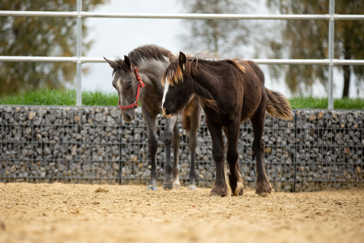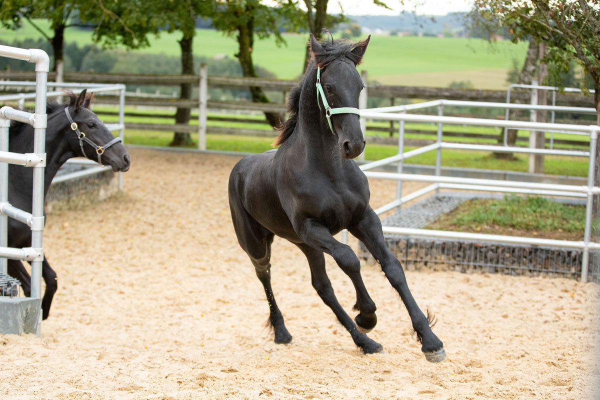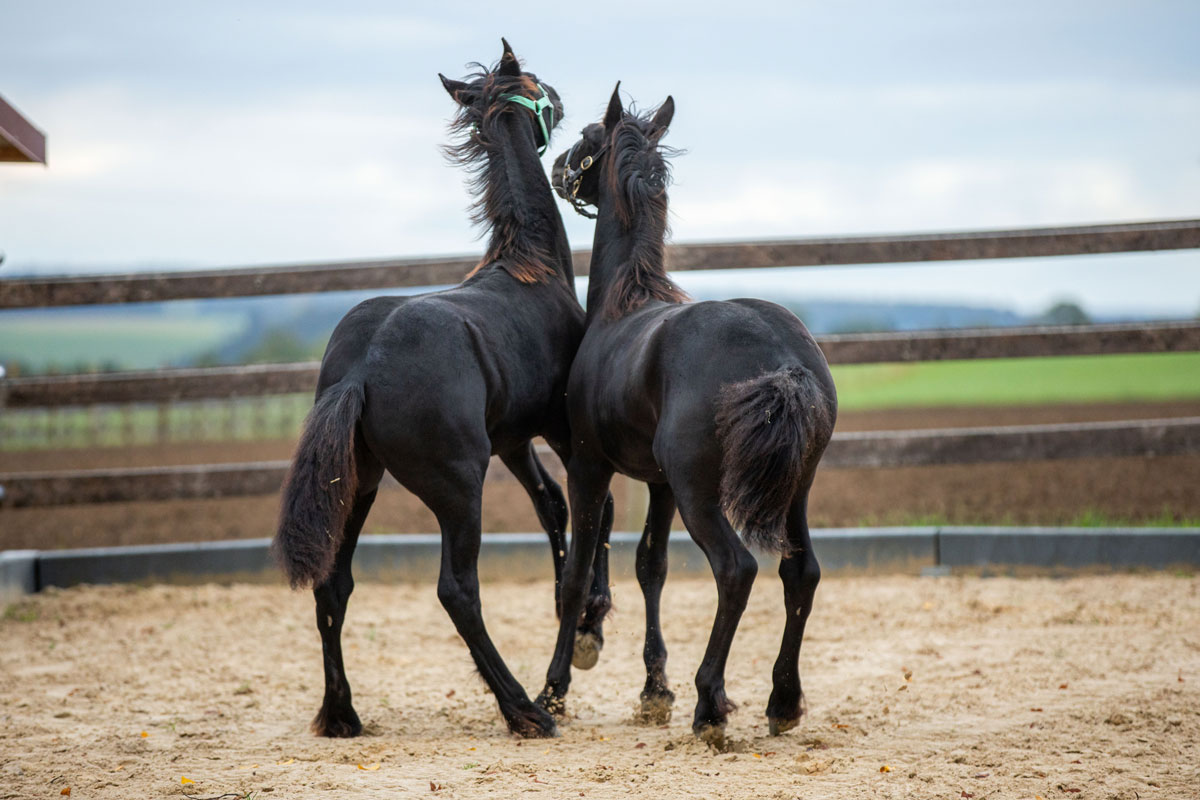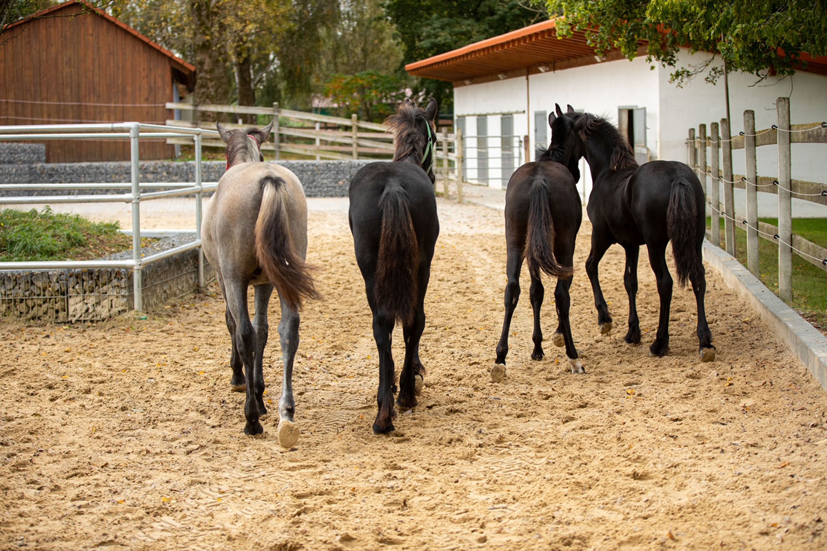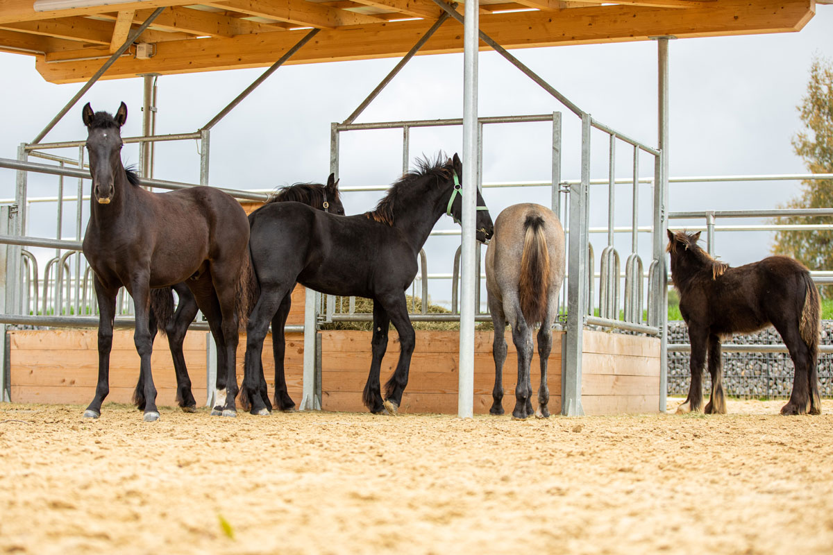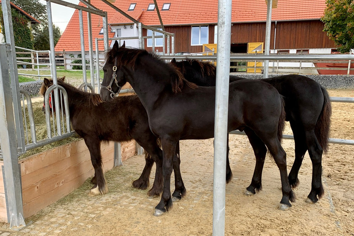 Einzug der Babies. Die ersten drei Absetzer, unsere eigenen Friesenjungs Priamos und Rico und der Tinkerbub Cody machten sich am 5. Oktober auf die lange Reise von Norddeutschland ins Allgäu. Tags drauf gesellte sich dann der Lipizzaner Poldi dazu und zu guter letzt am 7. Oktober noch der Lusitano Ravioli.