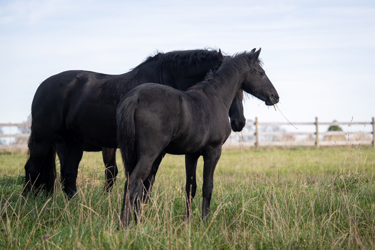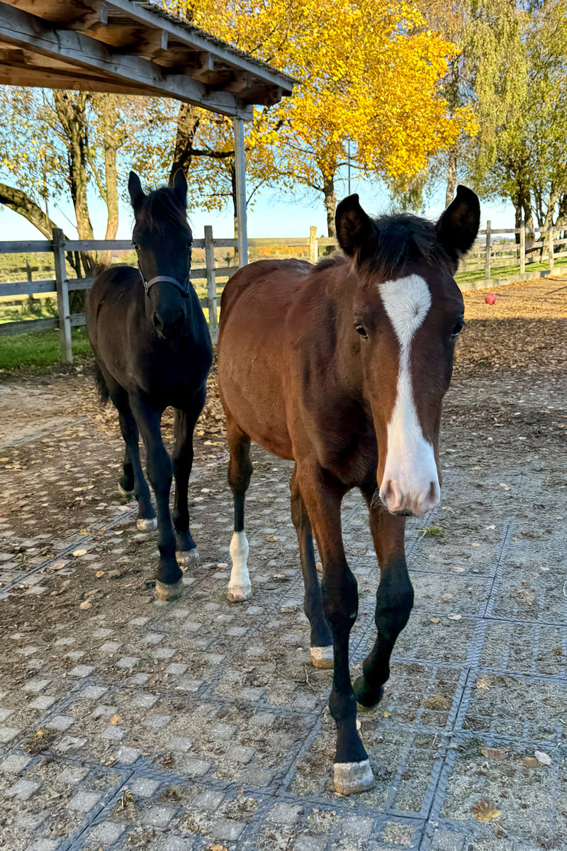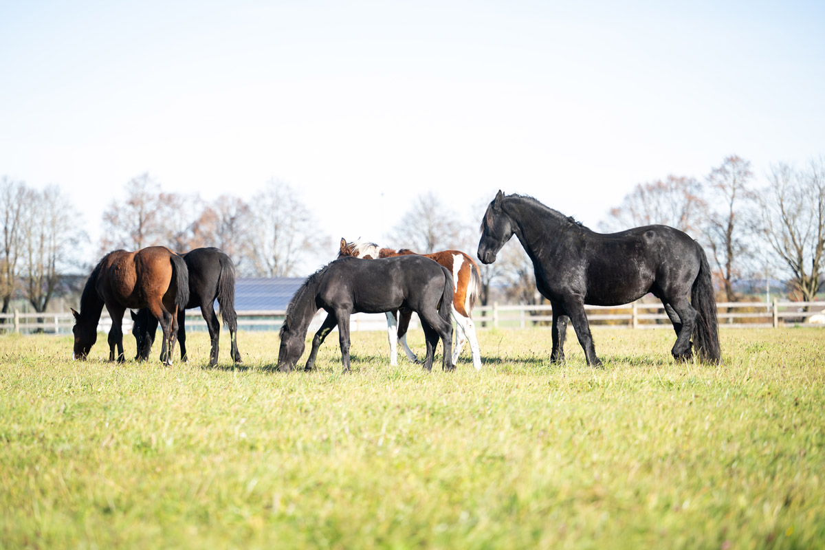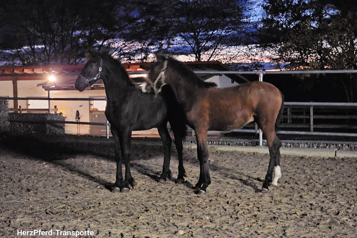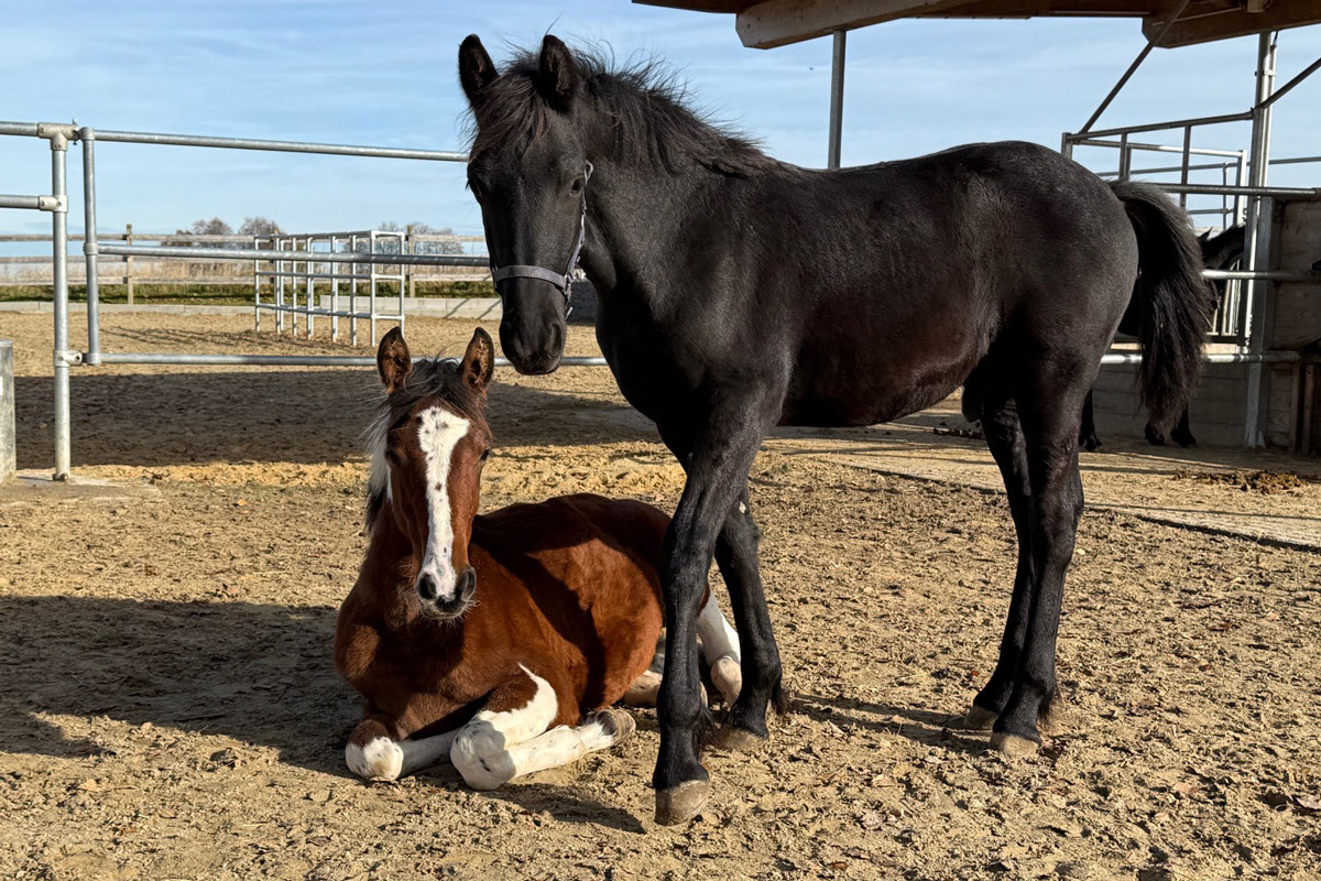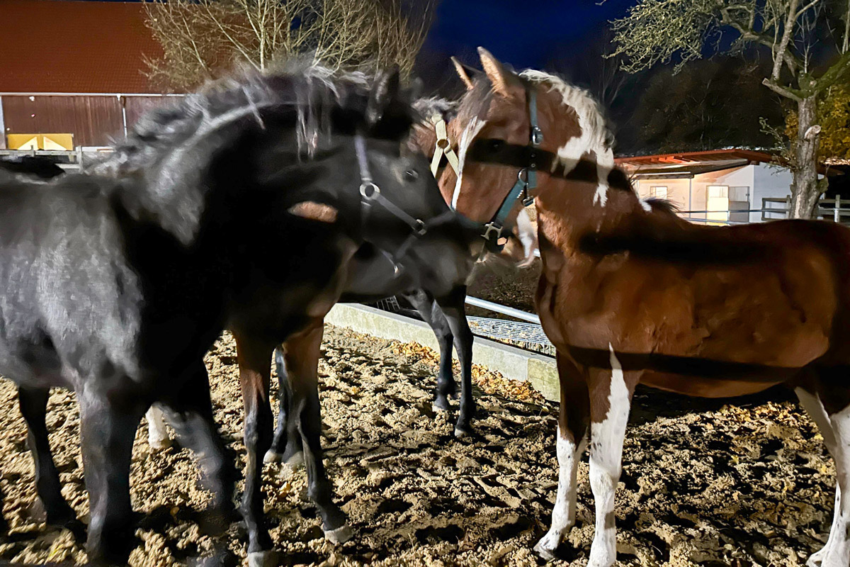 Das Warten hat ein Ende - Ende Oktober sind unsere beiden Fohlen VIVALDI (Lusitano) und DIOR (Friese) bei uns eingezogen. Zu dem vervollständigen die beiden Aufzuchtengste ELVIS (Friese) und AMBASSADOR (Deutsches Barockpferd) die diesjährige Gruppe.