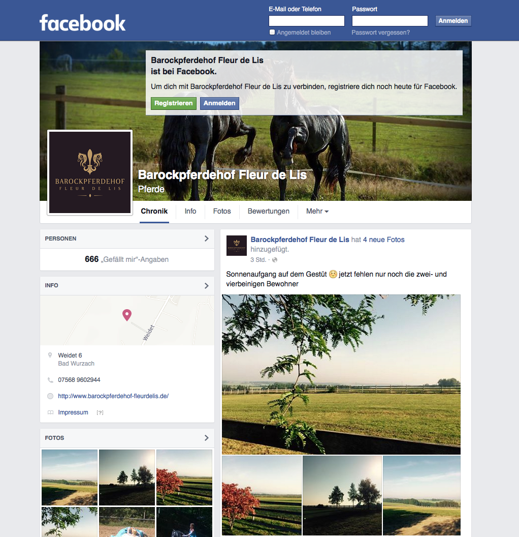 Unser Pferdehof auf FacebookWie viele Freunde bereits wissen, sind wir seit Anfang August auch mit unserer Facebook-Fanpage online. Wir möchten auch weiterhin Facebook nutzen um über unser Tagesgeschehen zu informieren und mit unseren Freunden in Kontakt zu treten.