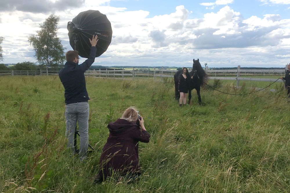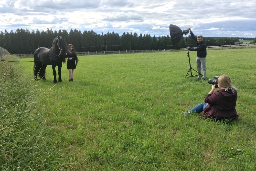 Für ihre Gesellenprüfung als Fotografin lichtete Leonie Maren Bühler am 1. Juli 2017 die zwei "Mähnenmonster" auf unserem Hof ab. Wunderschöne Bilder mit dem Model und Camacho sind entstanden. Das Wolkenspektakel am Himmel unterstich die ausdrucksstarken Aufnahmen noch zusätzlich. Toll, dass wir dazu betragen konnten, dass Leonie ihre Gesellenprüfung mit Bravour bestanden hat. Wir gratulieren recht herzlich und stehen für die Meisterprüfungsbilder gerne wieder zur Verfügung.