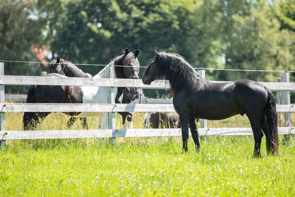 Es war Liebe auf den ersten Blick. Beim Besuch unserer Freundin Sandra Mertins hat dieser gerade 3jährige Junghengst (Eise 489 x Lolke 371) im Sturm unser Herz erobert und ist bereits zwei Tage später auf Fleur de Lis eingezogen. Nun lernt er über den Zaun schon mal seine neuen Weidekumpels kennen, mit denen er demnächst zusammen auf die Koppel darf.