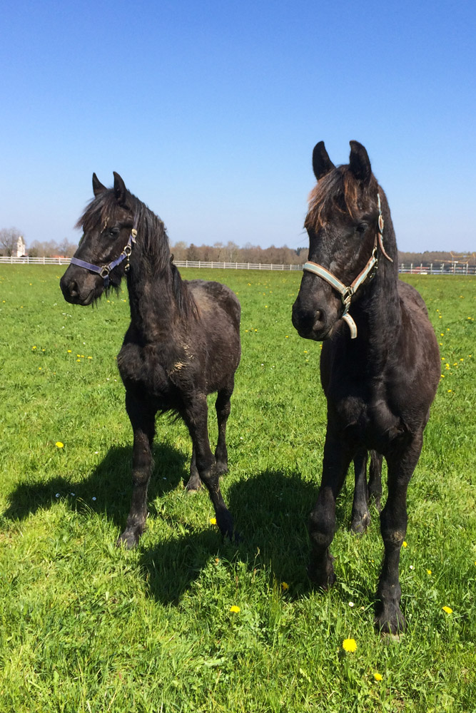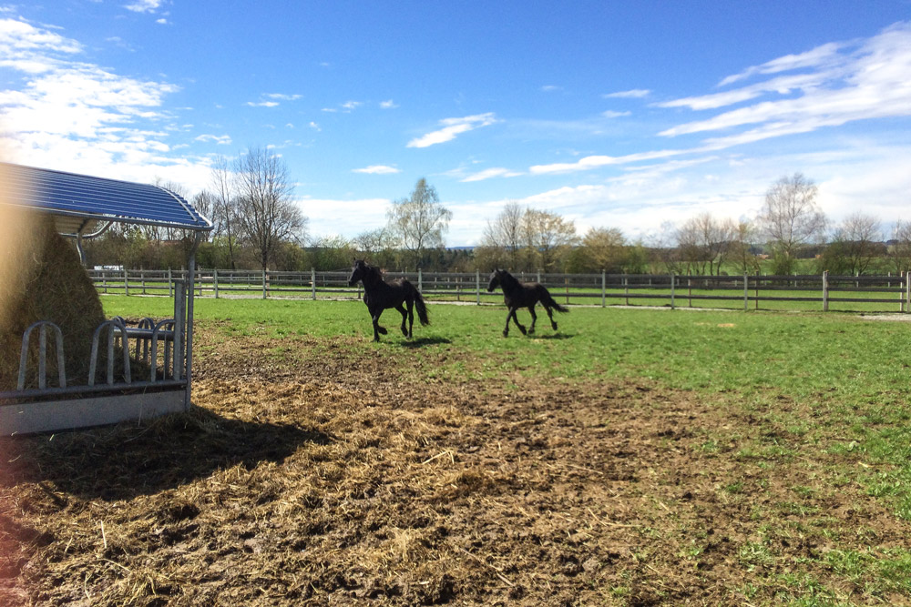 Das Winterfell unserer Buben ist so gut wie weg und trotzdem wir keine Stuten halten, haben auch die Pferde ein klein wenig Frühlingsgefühle. Voller Freude genießen sie den Tag auf den Koppeln! Die Tränken auf den Weiden sind auf Sommerbetrieb umgestellt, also keine Fässer mehr befüllen und die Deckensaison ist auch beendet! Der Winterdreck ist im neuen Waschhaus abgewaschen und nun geht’s in „spanischen Schritten“ in den ersten Sommer im schönen Allgäu!
