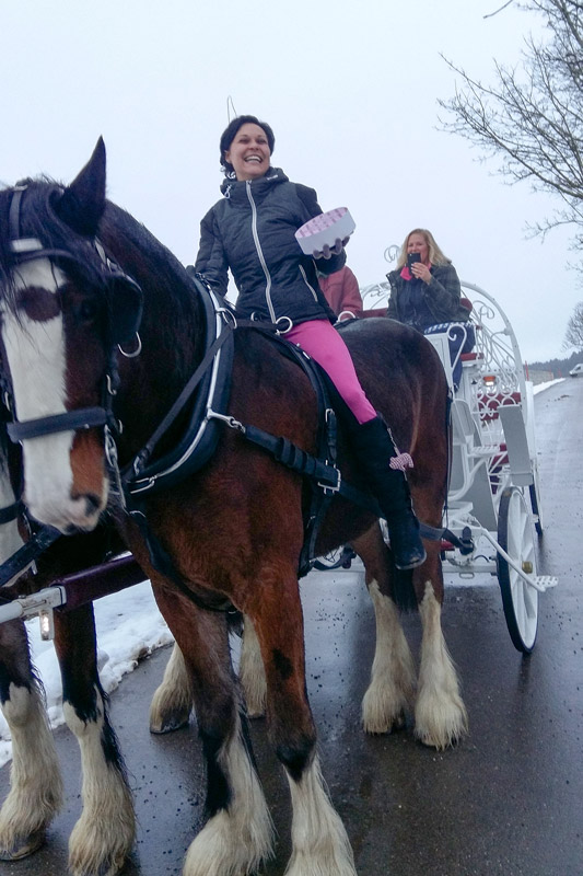 Für den Geburtstag von Yassi am 26. November haben wir uns etwas ganz besonderes einfallen lassen! Wir wussten, dass sie die großen Shire Horses liebt und in der Cinderella Kutsche von Urs Plüss (Shire.ch) wollte sie schon immer mal sitzen. Trotzdem es "nur" ein gewöhnlicher Geburtstag war, dachten wir, wir überraschen sie! Dieser Tag ist uns vollkommen gelungen.