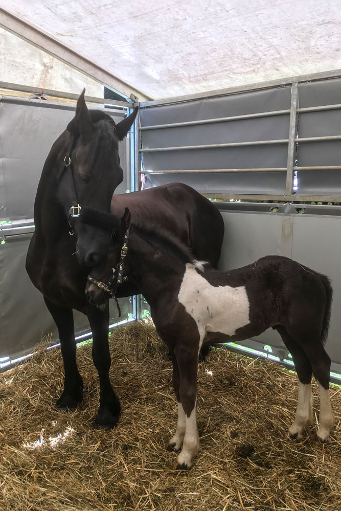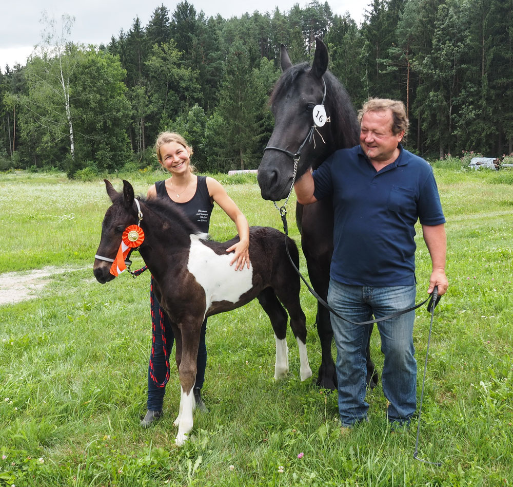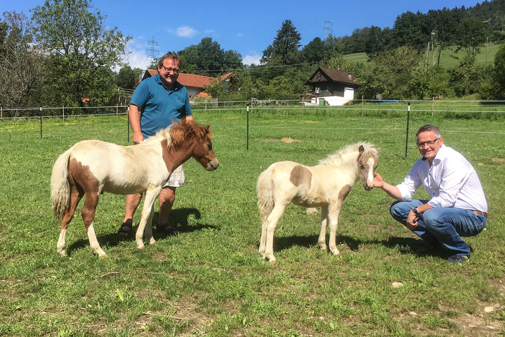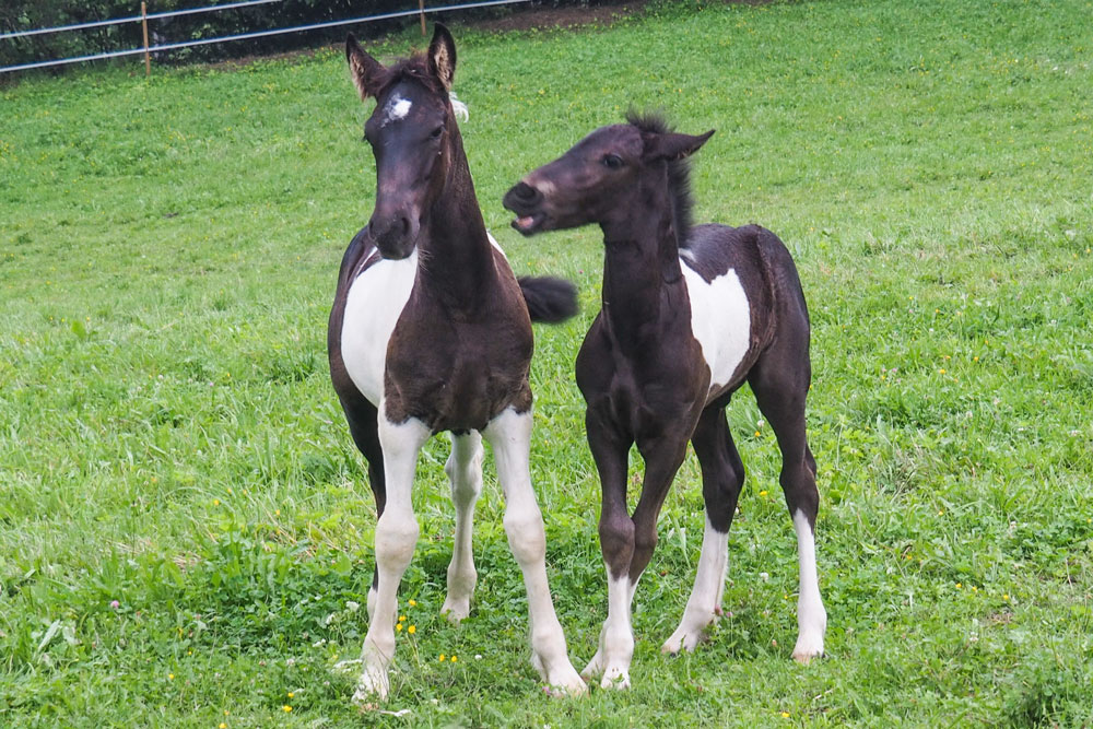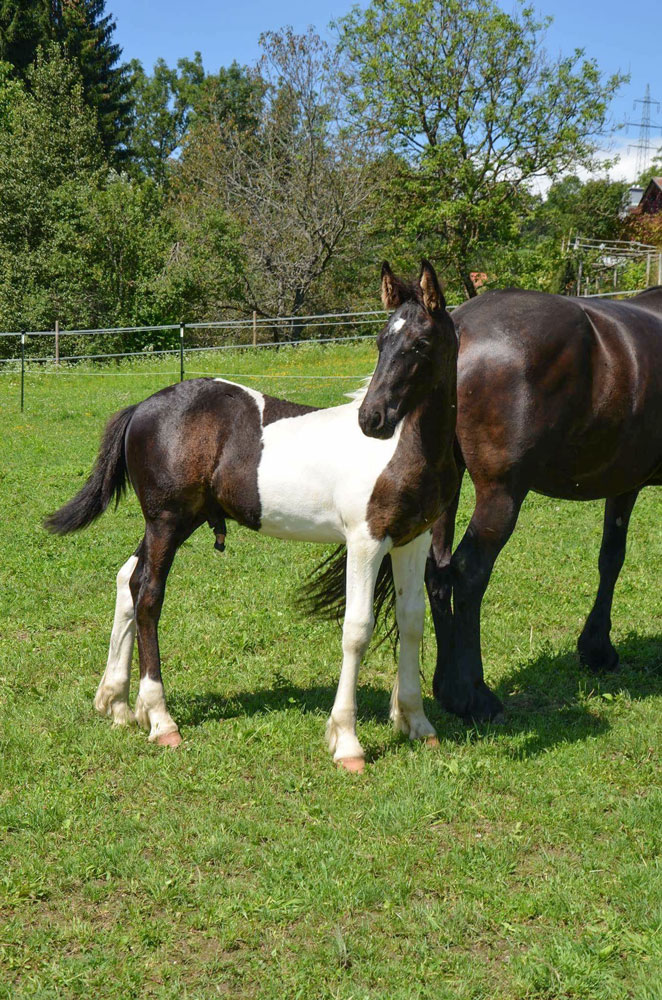 Den Besuch der BP Zuchtschau am 6. August in Österreich haben wir mit dem Besuch des Gestüts "No Limit" verbunden. Seit Wochen habe ich dort die kleinen Hengste beim Wachsen "verfolgt". Ganz besonders hatte ich mich in den jüngsten, den NOAH verguckt. Allerdings war/ist das auch der Augapfel der Züchterin Elke Meisl. Dieser kleine Mann wurde dann am Samstag auch noch einer 1te Prämie, sein Bruder NUMI mit einer 2ten Prämie ausgezeichnet. Es war wirklich eine schwierige Geburt, die Elke zum Verkauf des Fohlens zu bringen. Damit NOAH aber auch immer einen gleichalten Kumpel zum Spielen hat und da wir dieses Jahr keine Absetzer haben, darf sein hübscher Bruder NEO dann auch bei uns einziehen. Zuerst einmal bleiben die beiden Racker aber am schönen Wörthersee bei der Züchterin, da diese noch einen dritten kleinen NUMI hat und dieser ja nicht alleine großwerden soll. Nochmals ganz herzlichen Dank an Elke für die beiden "Schätzchen".