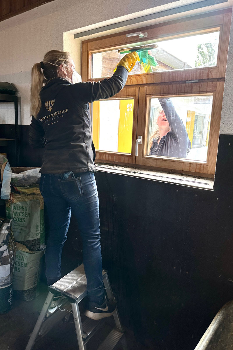 Herbstputz - gemeinsam wurde der Stall geschrubbt, alle Fenster geputzt und die Totholzhecke geleert und wieder mit frischen Knabbereien für die Pferde aufgefüllt. Danke euch allen.