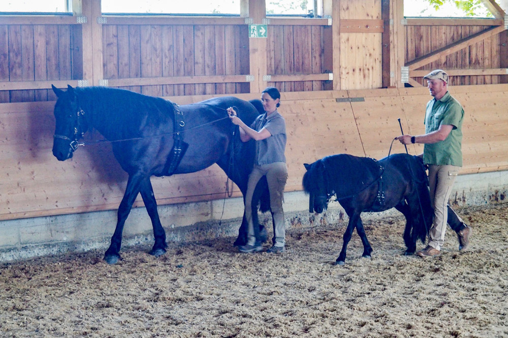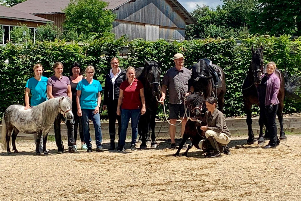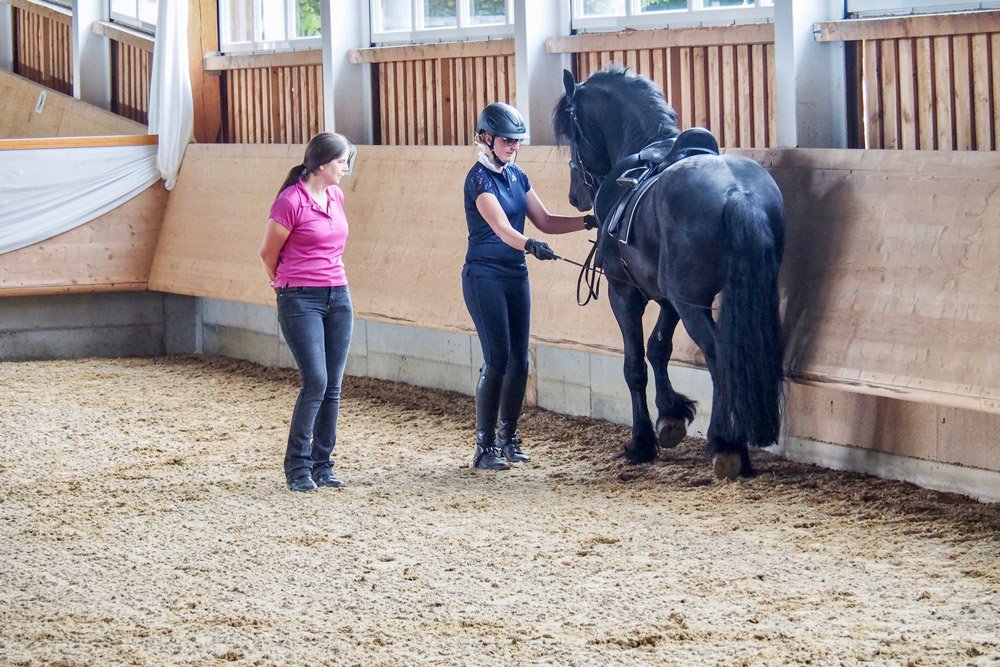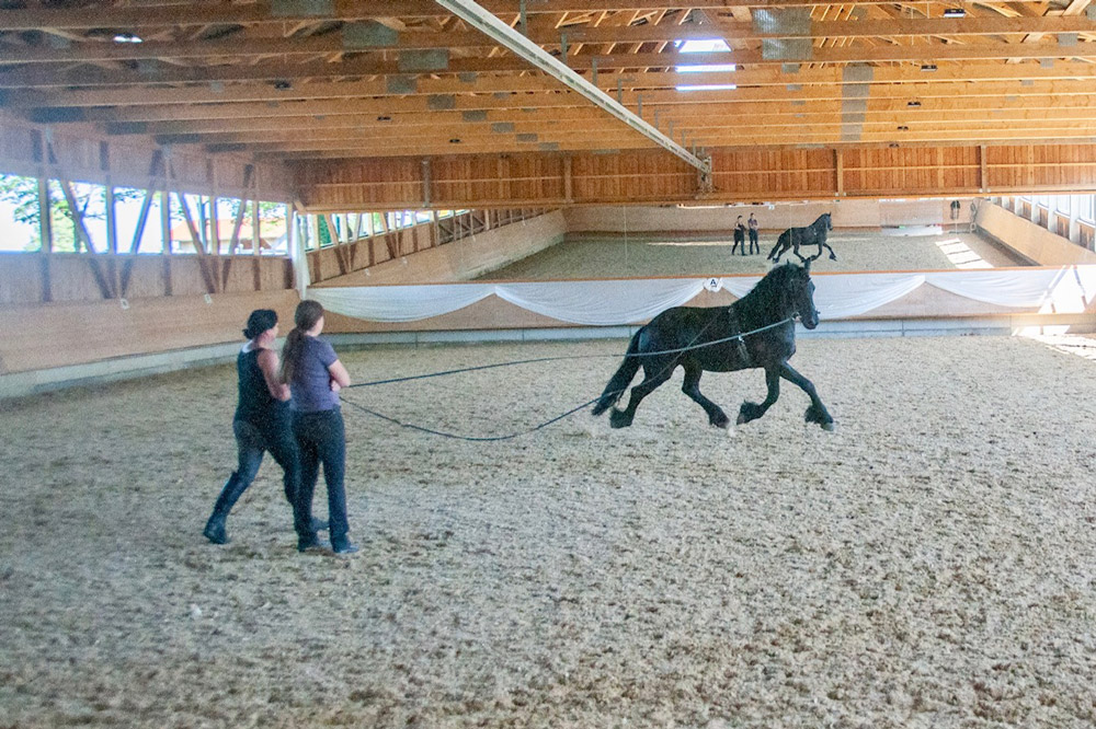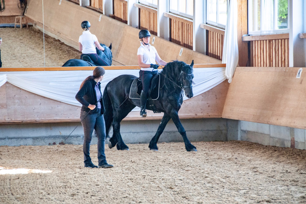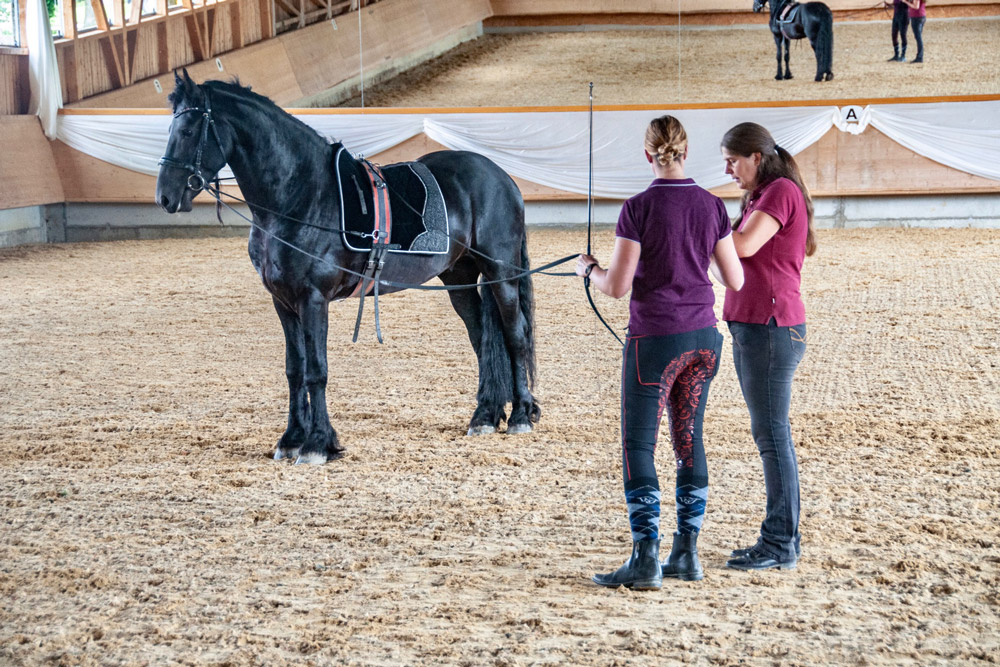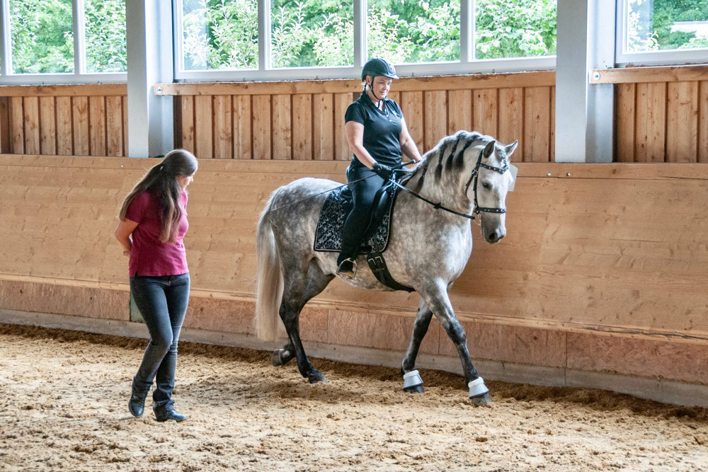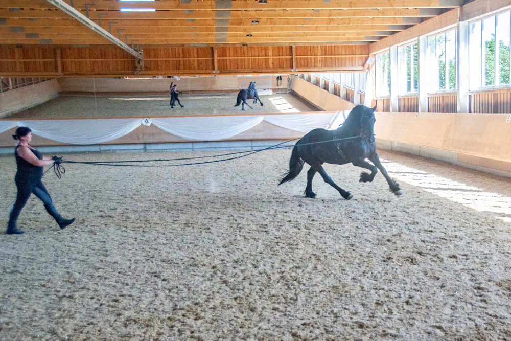 Die sechs Teilnehmer mit ihren acht Pferden wurden in Sachen Doppellonge, Zirzensik, klassische Dressur und Langzügelarbeit in Einzelstunden von Tatjana unterrichtet.