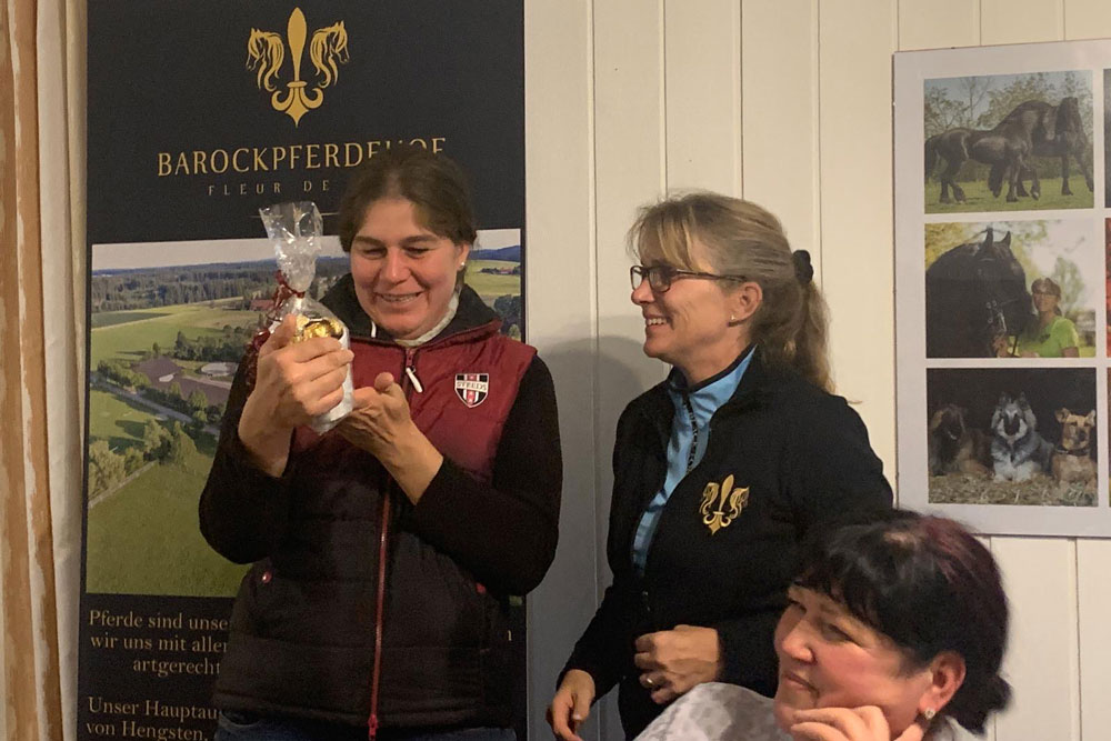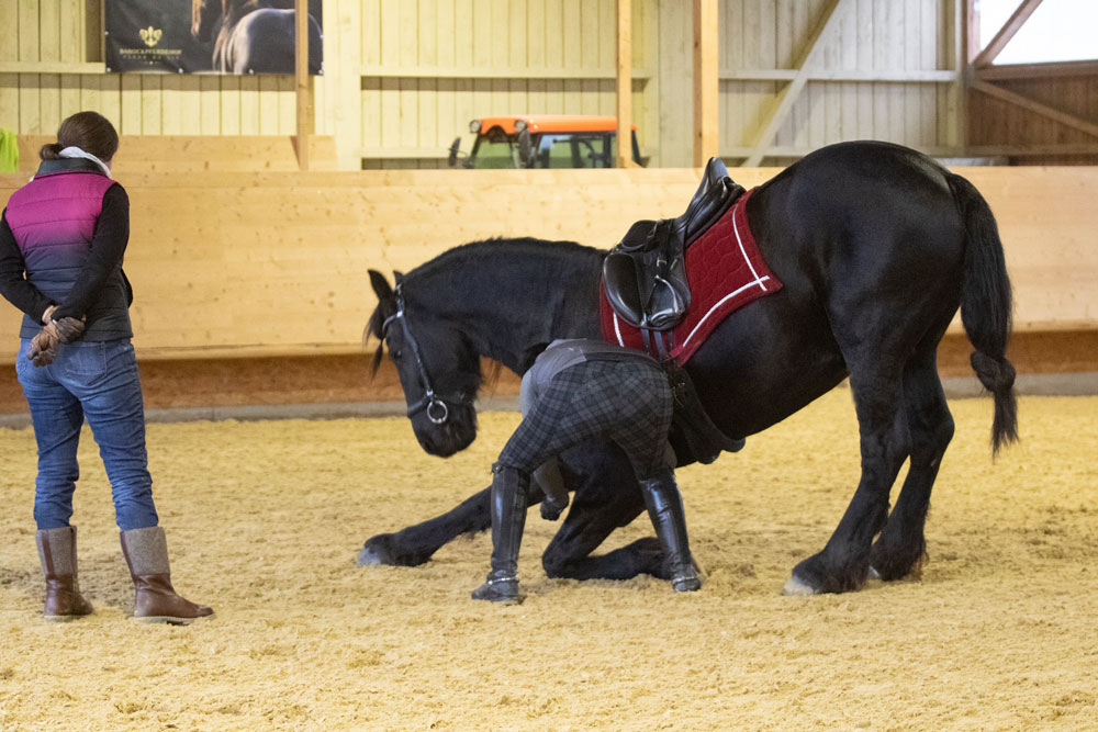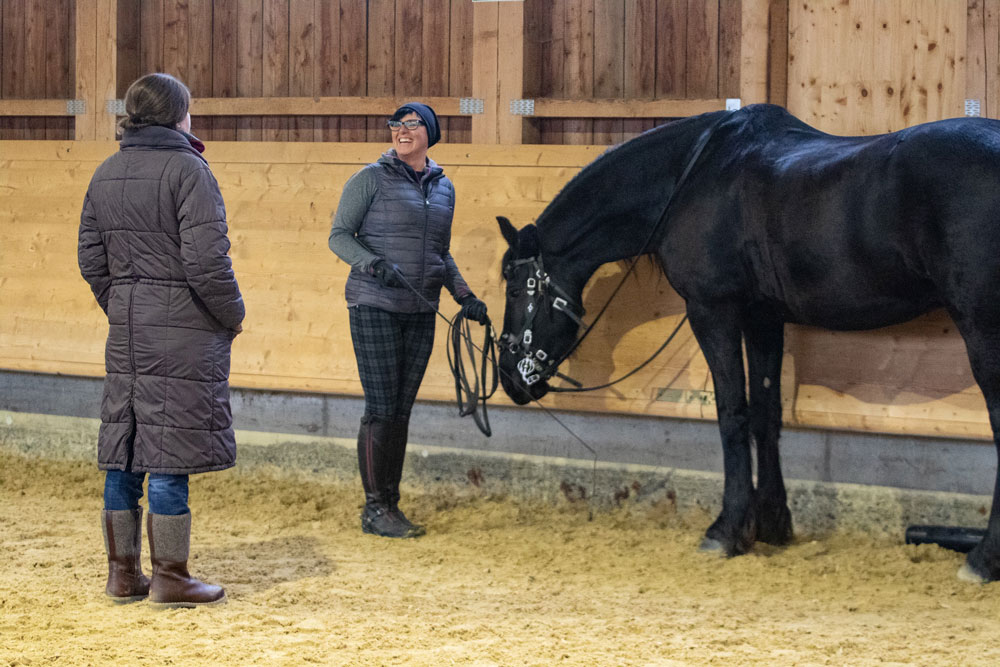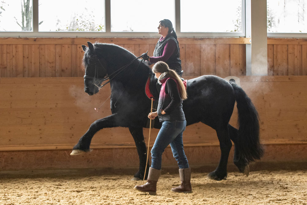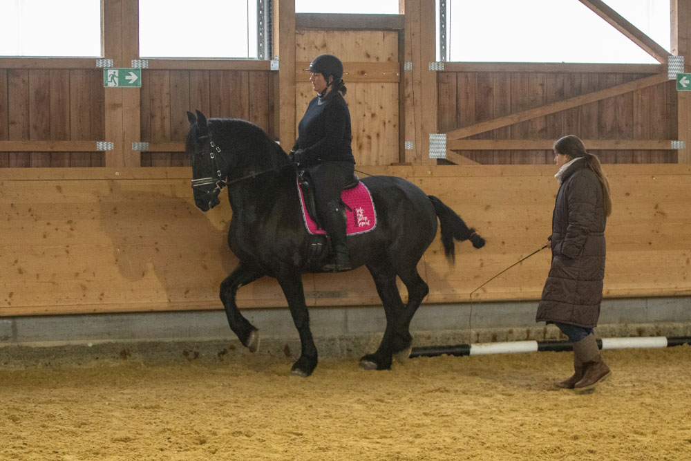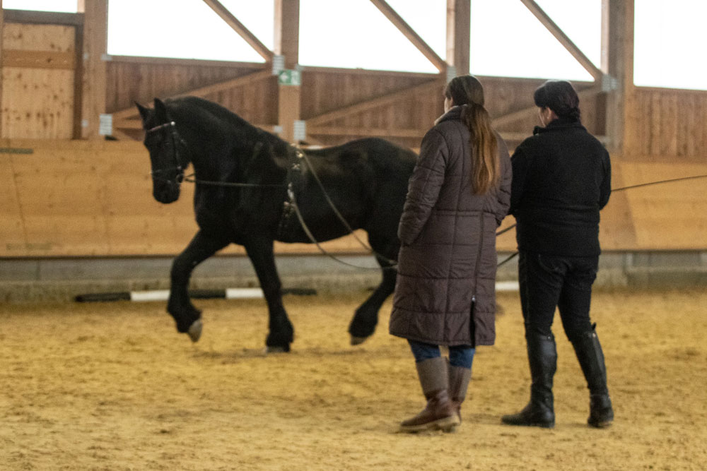 Die Trainerin, Tatjana Früh, ging auf alle Wünsche der Kursteilnehmer ein. So konnte man sich in Sachen Doppellonge, Zirzensik, Langzügel oder in klassischerDressur weiterbilden.