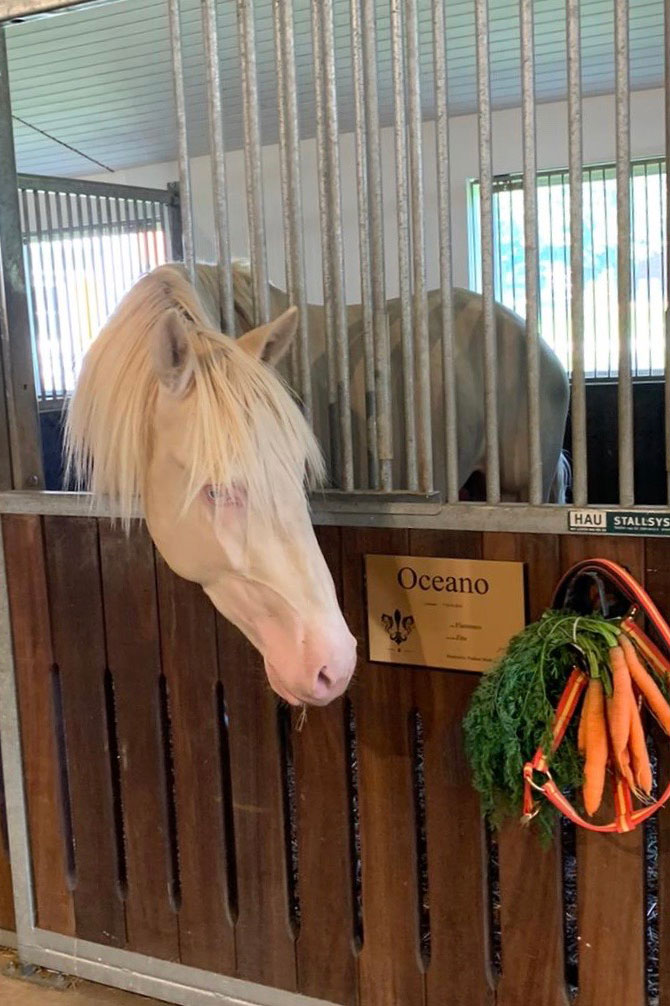 Nach langem Warten (coronabedingt) konnte endlich der zweijährige Lusitanohengst OCEANO auf die Reise geschickt werden. Am 12. September konnte Nadine dann endlich ihren Perlino OCEANO wohlbehalten entgegennehmen.