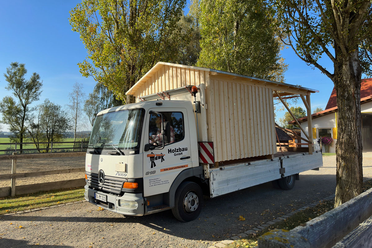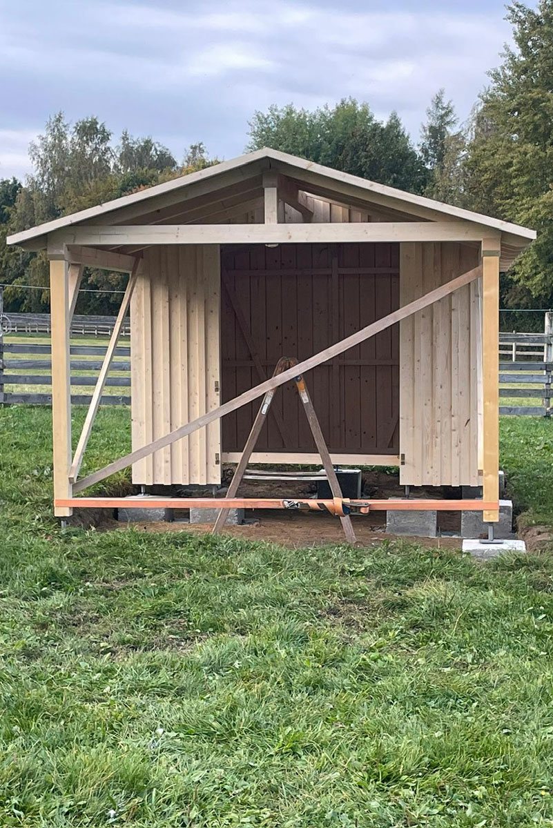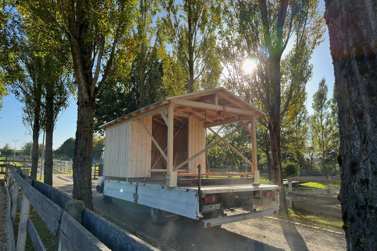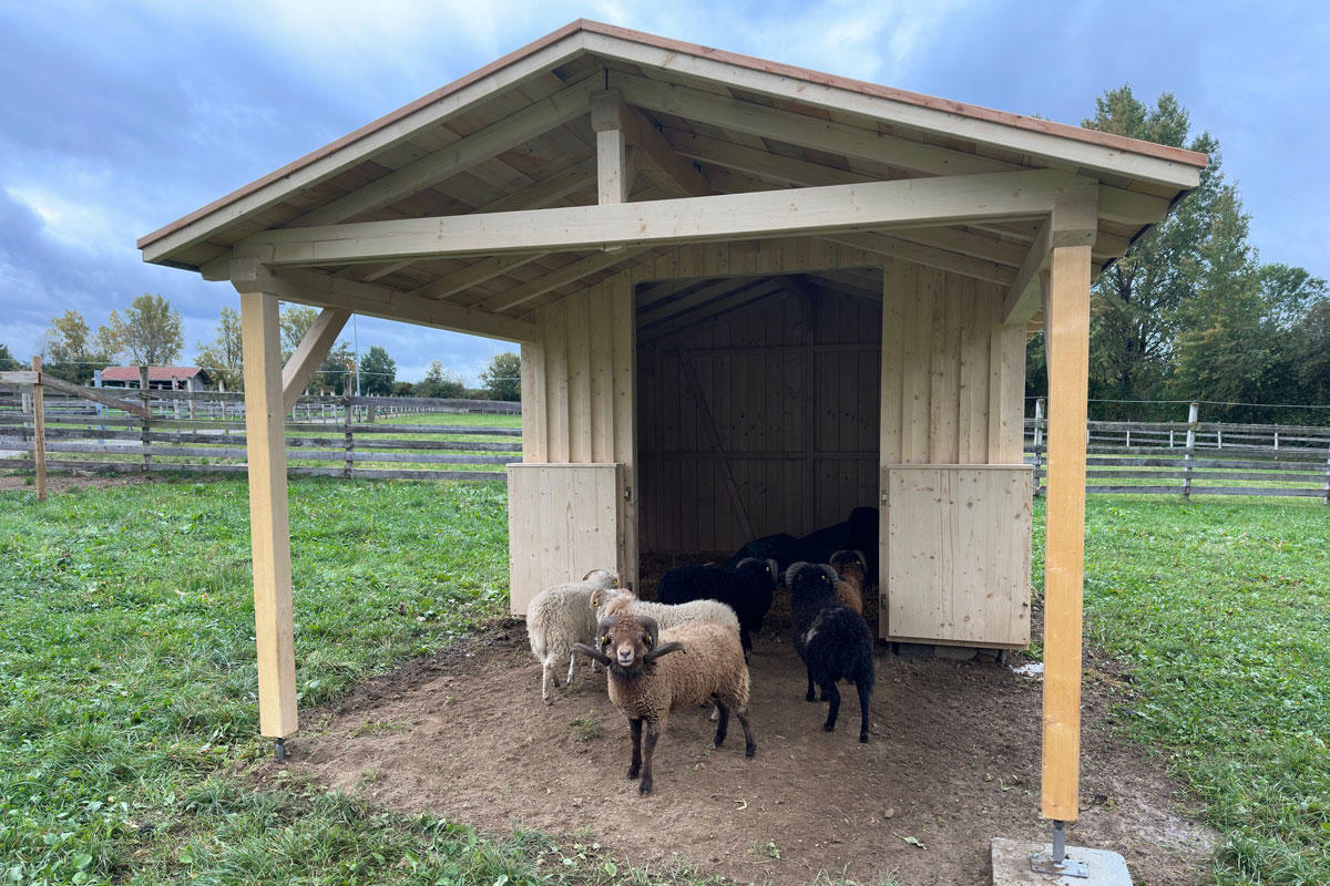 Juhu, unsere neue Schafhütte ist da - vielen Dank an die Firma Merk Holzbau GmbH die diese kleine Villa für unsere Böckchen gebaut hat.
