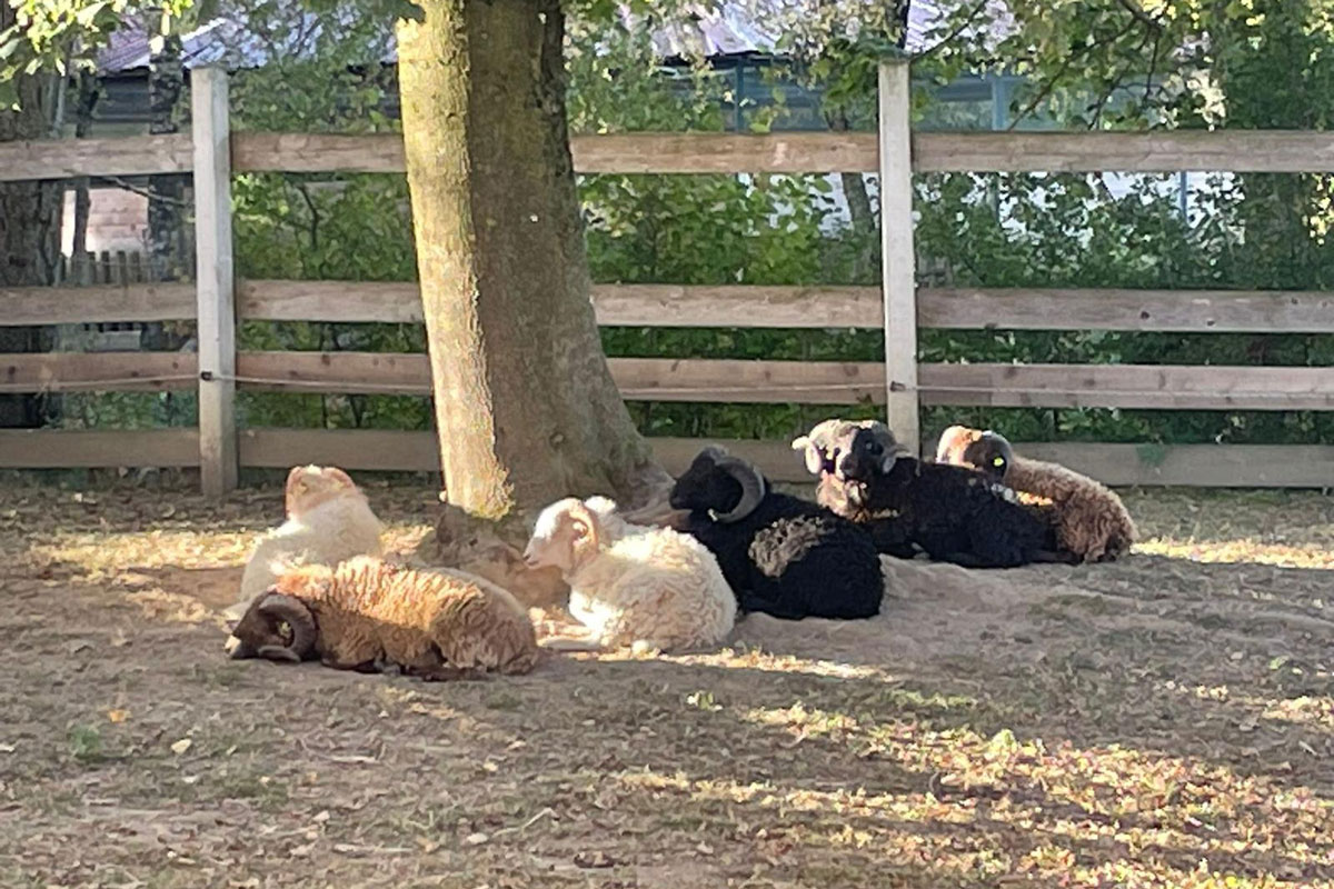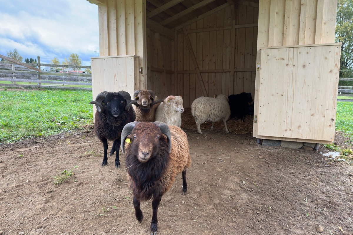 Noch während der Waldboden reingeschaufelt wurde, bezogen die kleinen Quessant Schafe schon ihr neues Domizil.