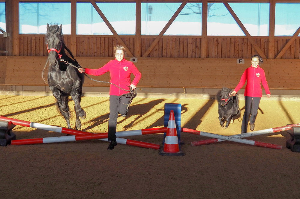 Viel Spaß hatten unsere Hengste wie auch wir bei unserem Neujahrspringen 2018. Aufgrund der doch sehr unterschiedlichen Beinlängen von den zwei Jungs müssen wir noch etwas an der Synchronität arbeiten. :-)