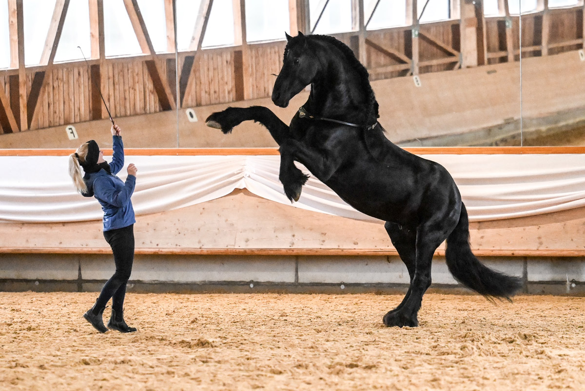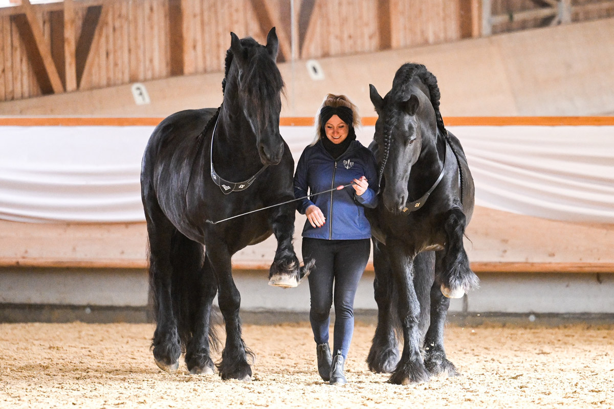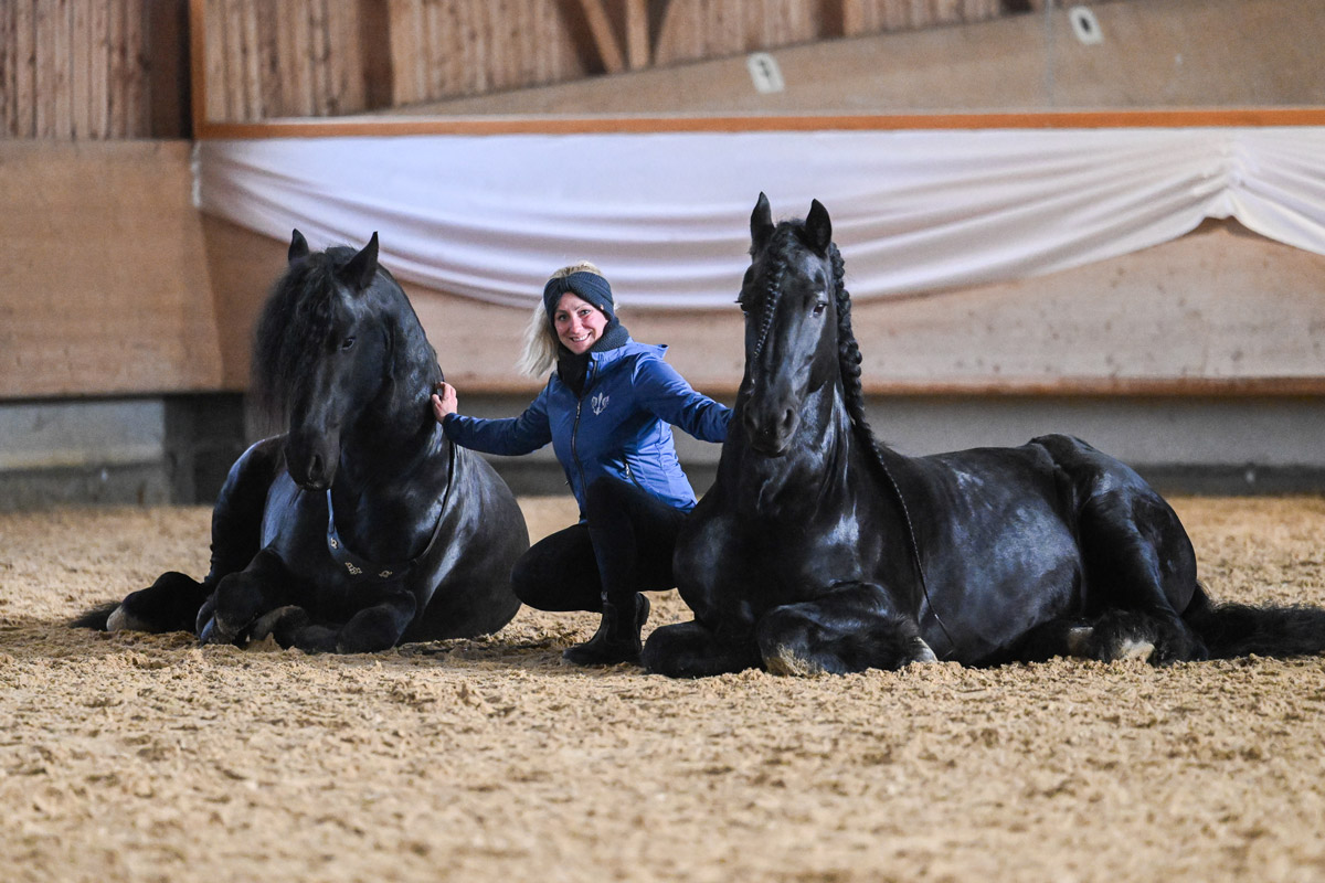 Anna und unsere drei schwarzen Perlen: Lennox, Camacho und Kenzo gemeinsam bei der Freiarbeit und Zirzensik.