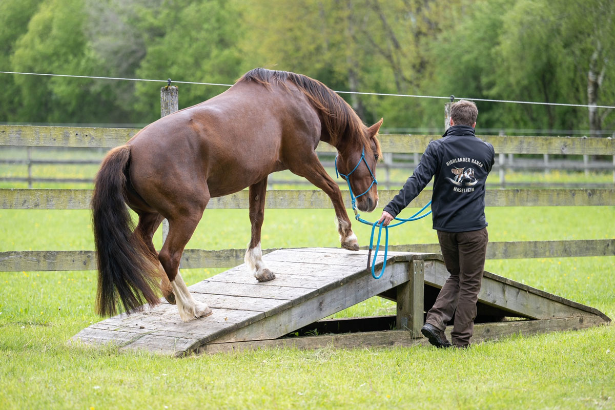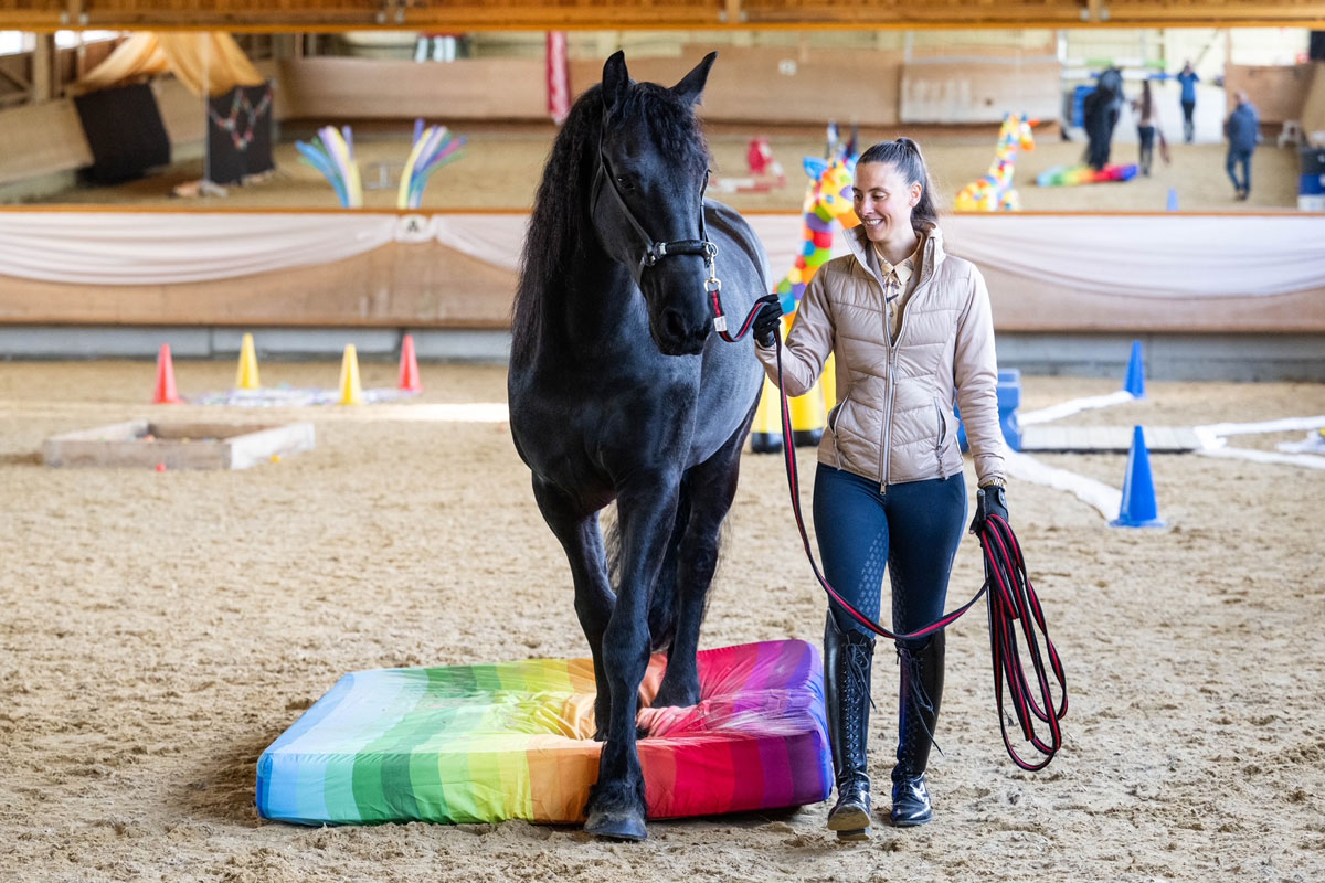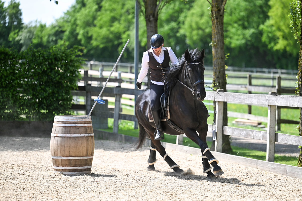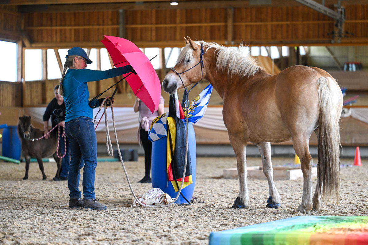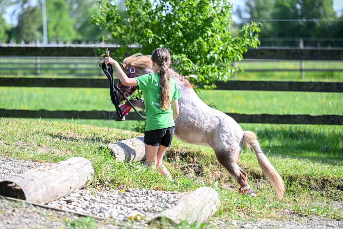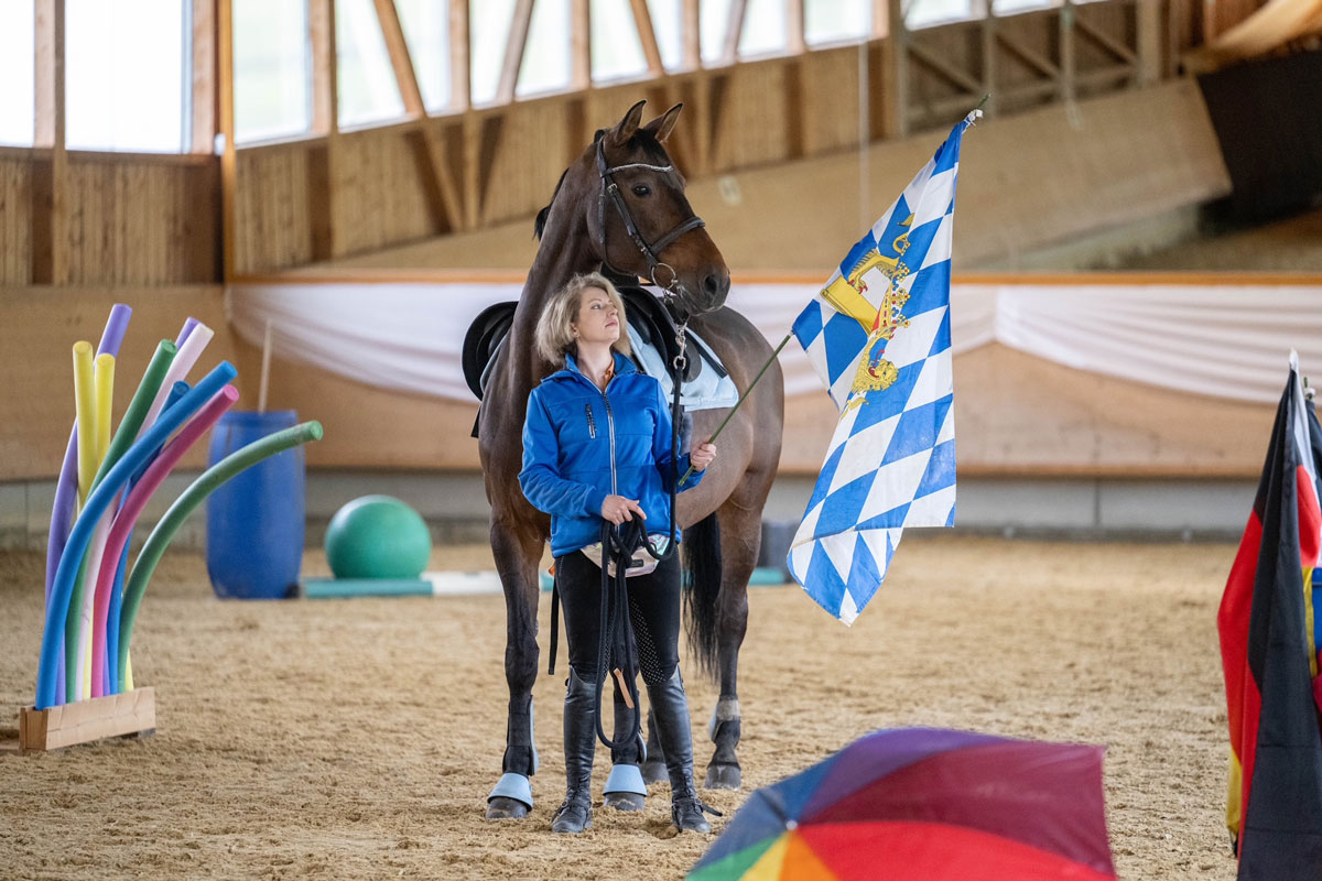 8 fabelhafte Tage „freie Trailwoche" liegen hinter uns. Den 157 Reiter/Pferd Paaren, vom süßen Shetty bis hin zum mächtigen Kaltblut, wurde einiges geboten: in unserer Reithalle gab es allerlei zum Thema Gelassenheitstraining, auf dem Dressurplatz waren verschiedene Stationen eines Working Equitation Trails aufgebaut und auf dem kleinen Platz waren Breitensportelemente, Wippen und Podeste zu finden. Für die meisten Reiterpaare war allerdings unser Natur Trail das Highlight und da ganz besonders (wie jedes Jahr) unser Teich. Die strahlenden Gesichter und die durchweg positiven Reaktionen auf diese Veranstaltung und dass sich viele schon für August angemeldet haben freut uns sehr, denn solche Tage sind für meine drei Mitarbeiterinnen auch mit viel Arbeit und Überstunden verbunden, denn schließlich muss auch der ganz normale Alltag auf dem Hof so nebenbei gestemmt werden.