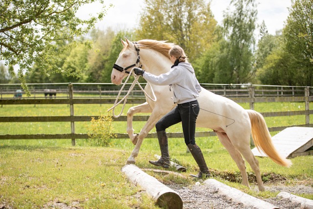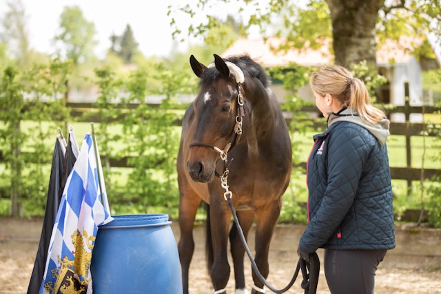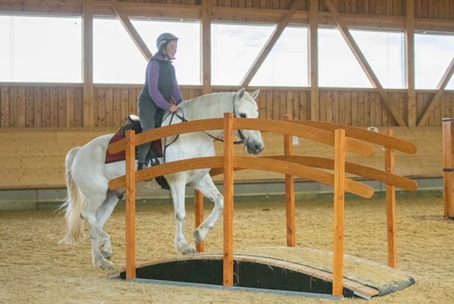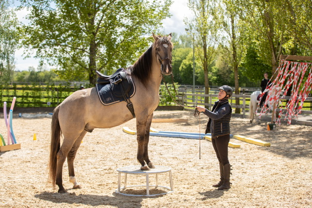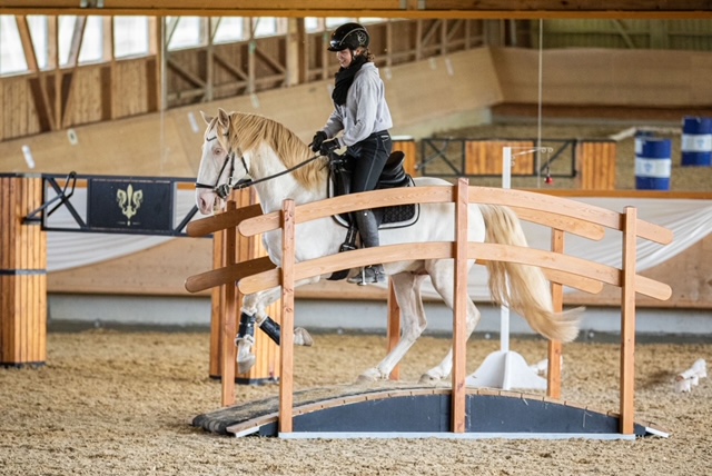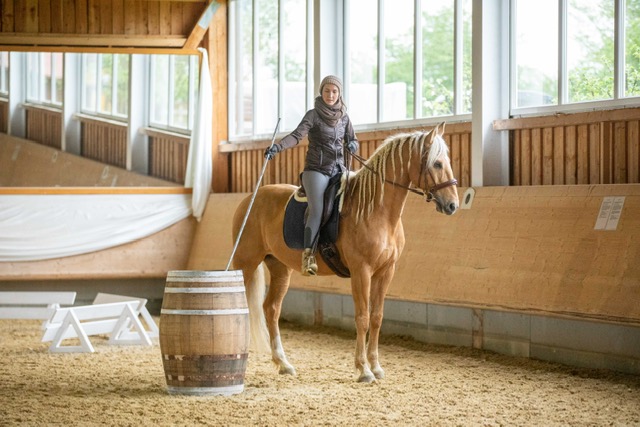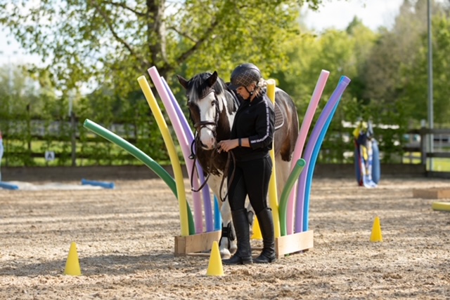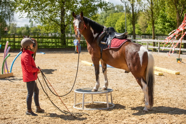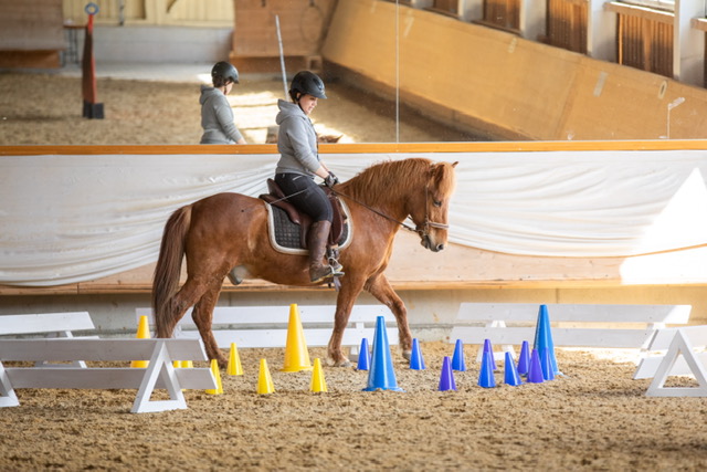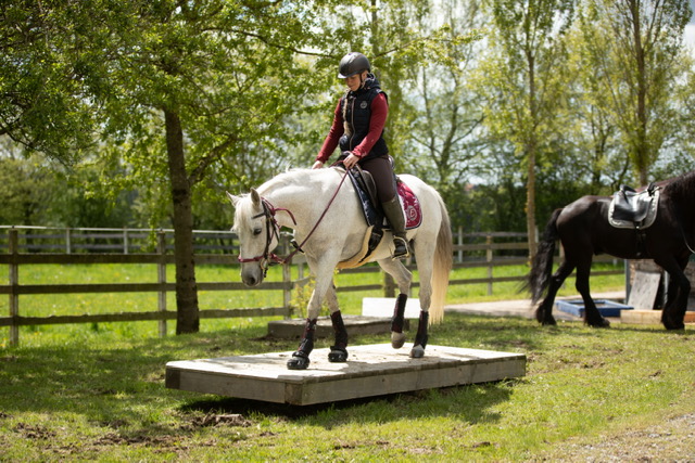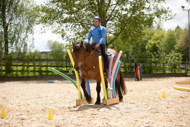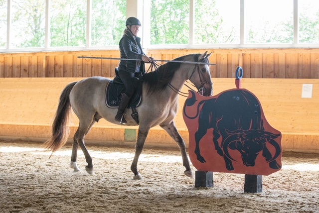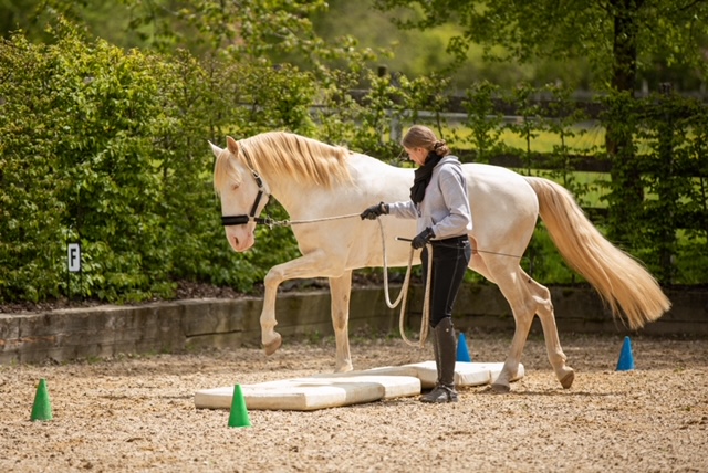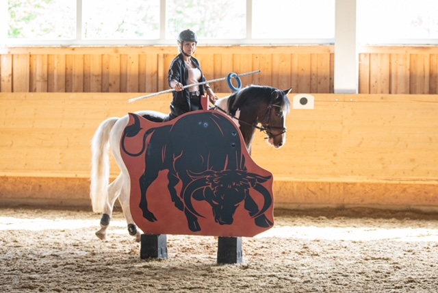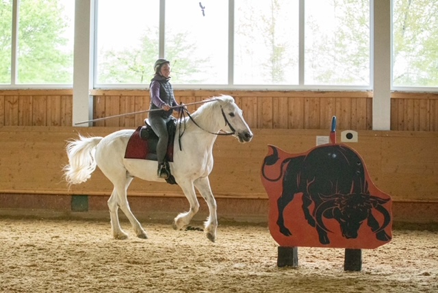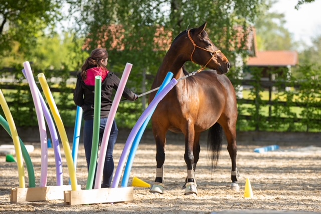 Fünf fabelhafte Tage „freie Trailwoche“ liegen hinter uns. Rechtzeitig zu dieser Veranstaltung rutschte der Inzidenzwert kräftig nach unten und der Wettergott war uns auch (bis auf einen nassen Ausrutscher) wohl gesonnen. Den 2- und 4-beinigen Teilnehmern, vom 20 jährigen Shetty, über den Lusitanohengst bis hin zum mächtigen Kaltblut, wurde einiges geboten: in unserer Reithalle waren die verschiedensten Stationen eines Working Equitation Trails aufgebaut, auf dem großen Reitplatz allerlei zum Thema Gelassenheitstraining und auf dem kleinen Platz waren Breitensportelemente zu finden. Für die meisten Reiterpaare war allerdings unser Natur Trail das Highlight und da ganz besonders (wir letztes Jahr auch) unser Teich. Die strahlenden Gesichter und die durchweg positiven Reaktionen auf diese Veranstaltung und dass sich viele schon für August angemeldet haben freut uns sehr, denn sie ist für meine „Mädels“ auch mit viel Arbeit und Überstunden verbunden und Anna hatte auch noch ein paar Hundert Fotos zu sichten und bearbeiten.