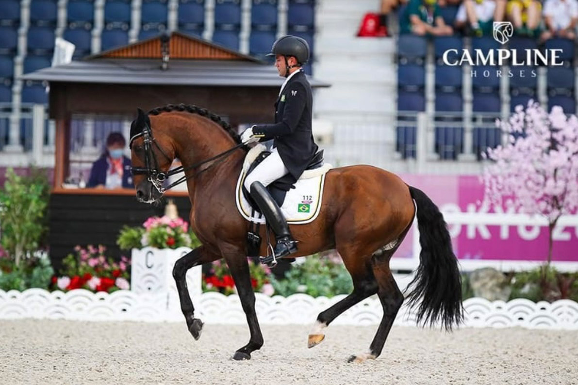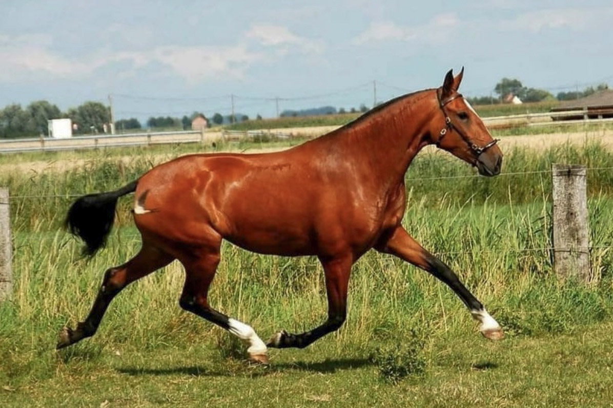 Seine Mutter Latina stammt von dem olympischen Hengst Escorial ab.
