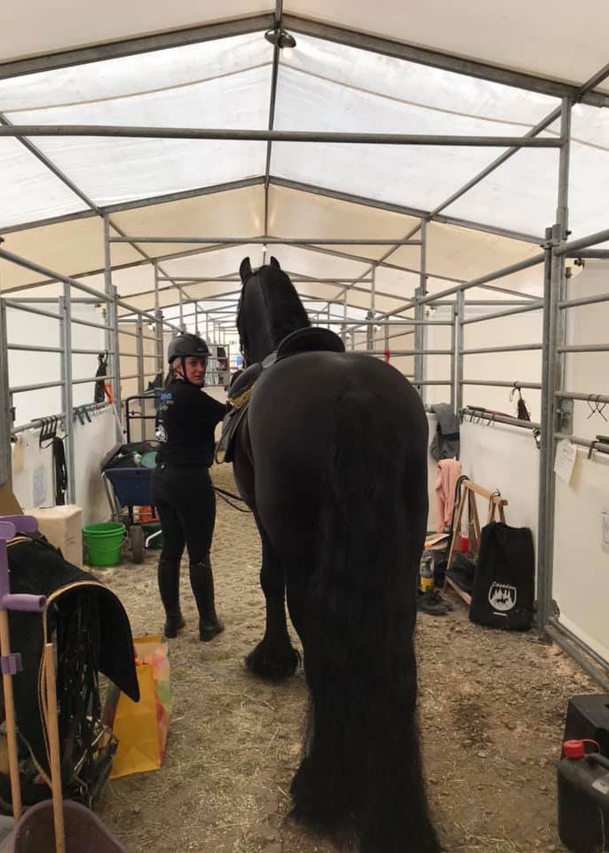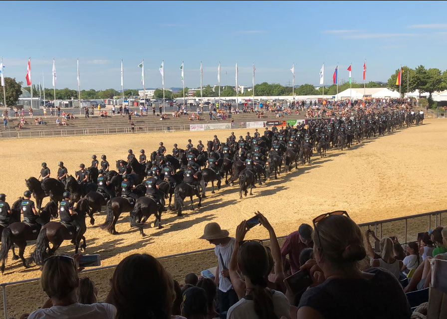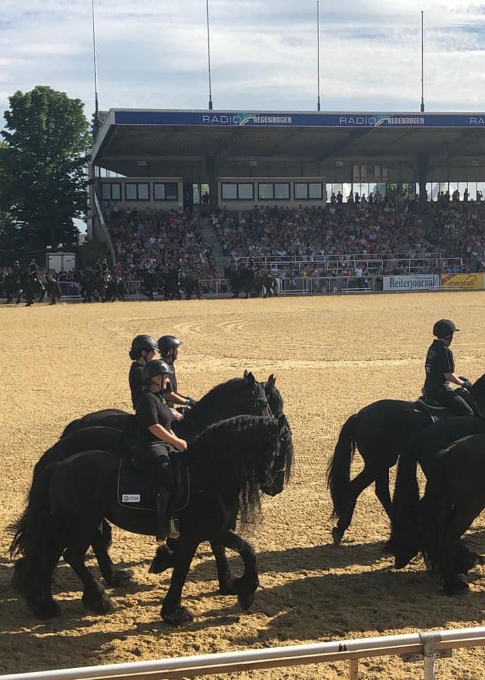 Auf der Equitana Open Air war Anna Kulicke zusammen mit Friesenhengst Rein einer der 132 Reiter/innen beim Weltrekord. Herzlichen Glückwunsch.