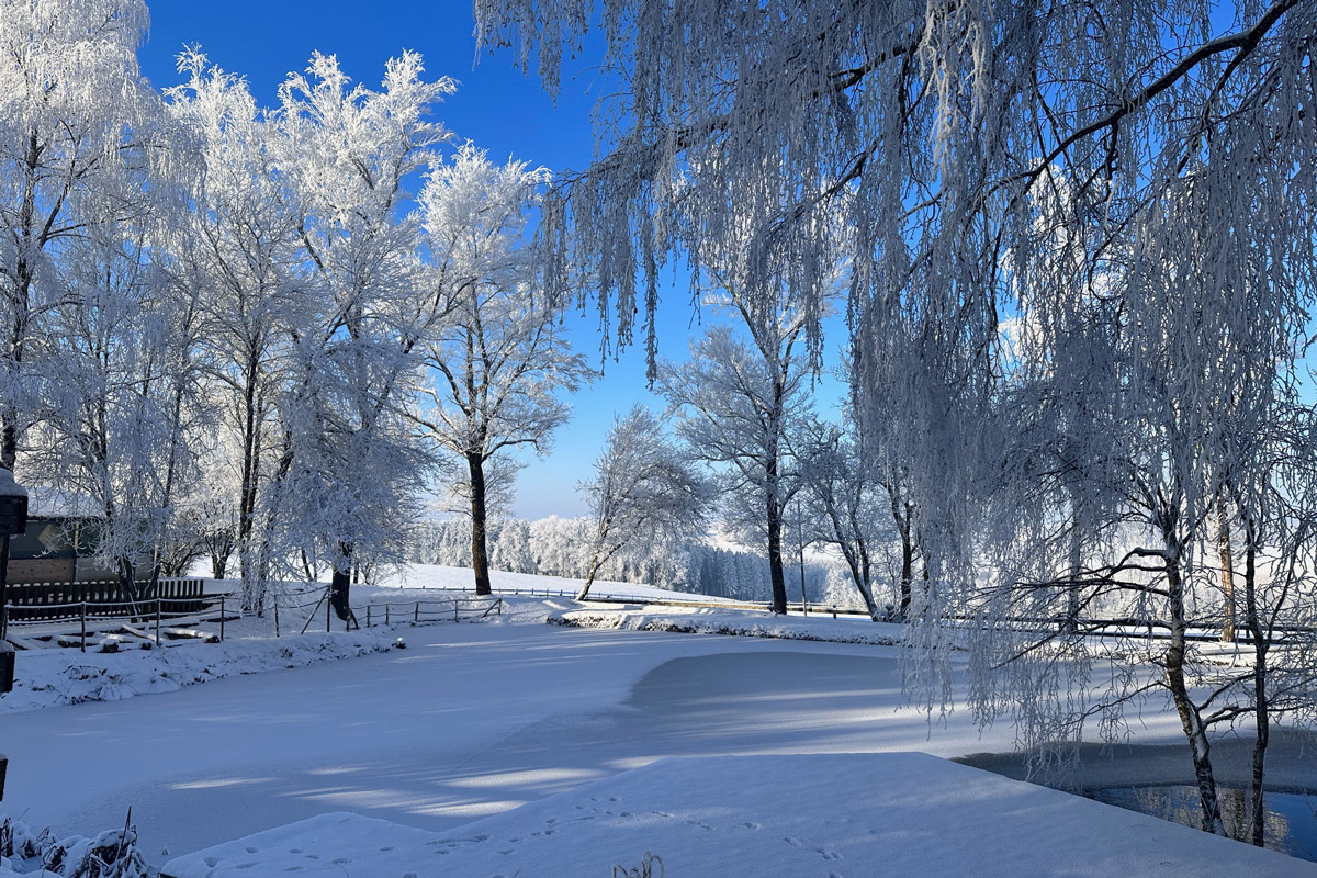 Herrlicher Sonnenschein, frostige Temperaturen und eine traumhafte Winterlandschaft mit überzuckerten Bäumen.
